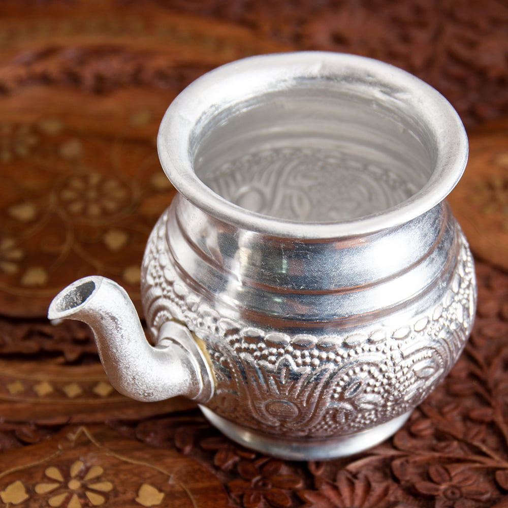 インド伝統唐草エンボスのアルミ水差し - 高さ:約7.5cm x 12個