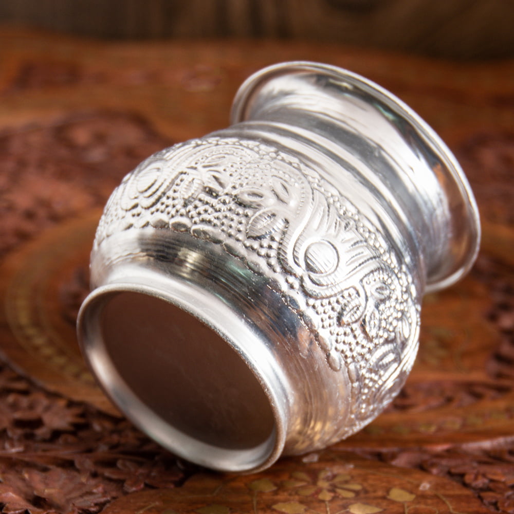 【送料無料・12個セット】インド伝統唐草エンボスのアルミ水差し - 高さ:約7.5cmです。セットでお得になっています♪