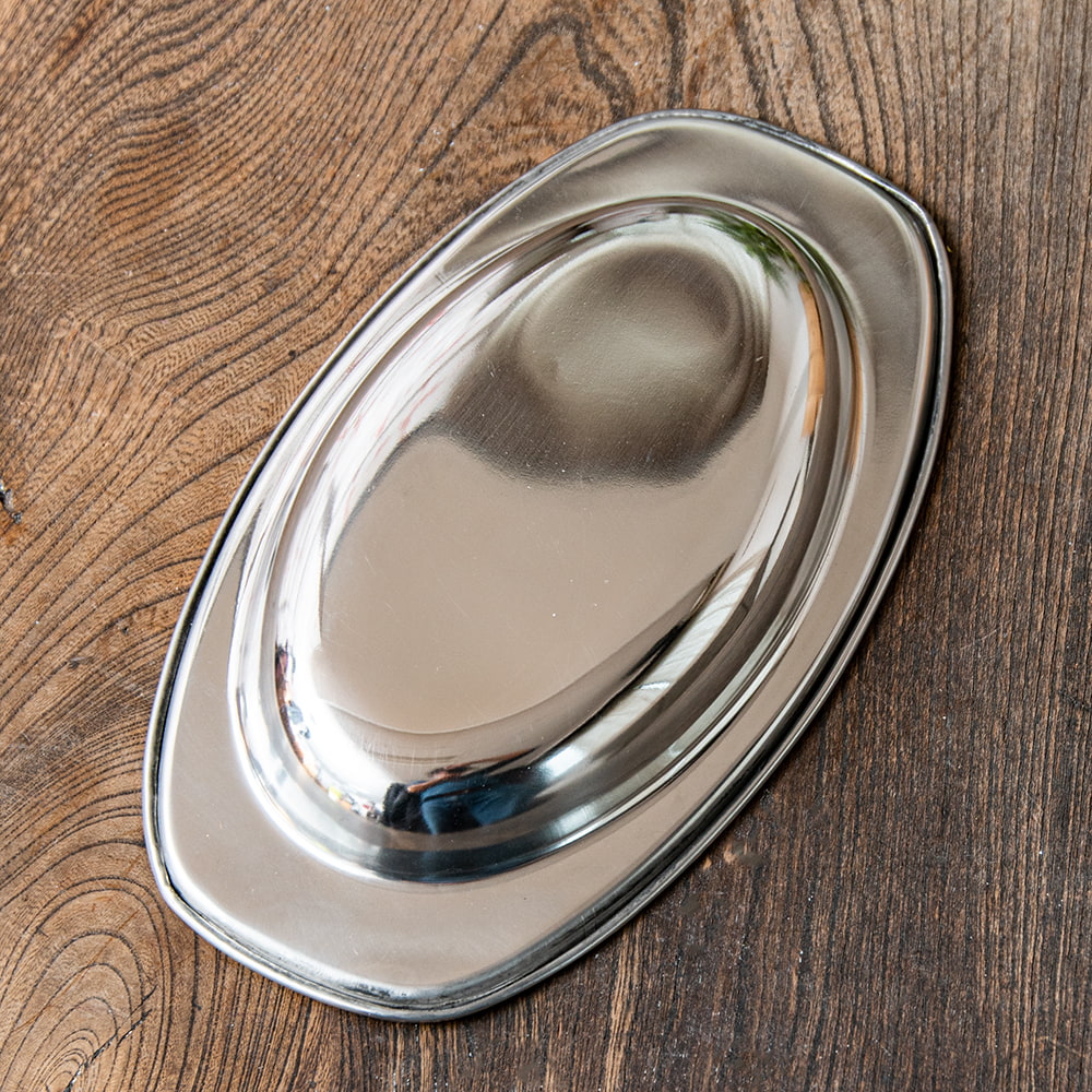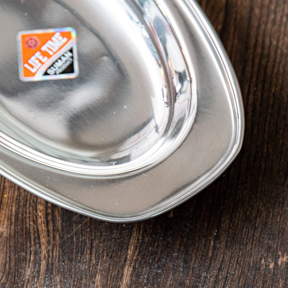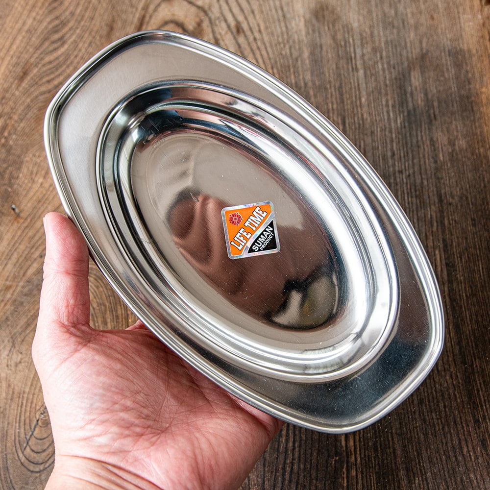 インドのステンレス製 オーバルプレート [22cm x 13.5cm] 約200ml x 7個