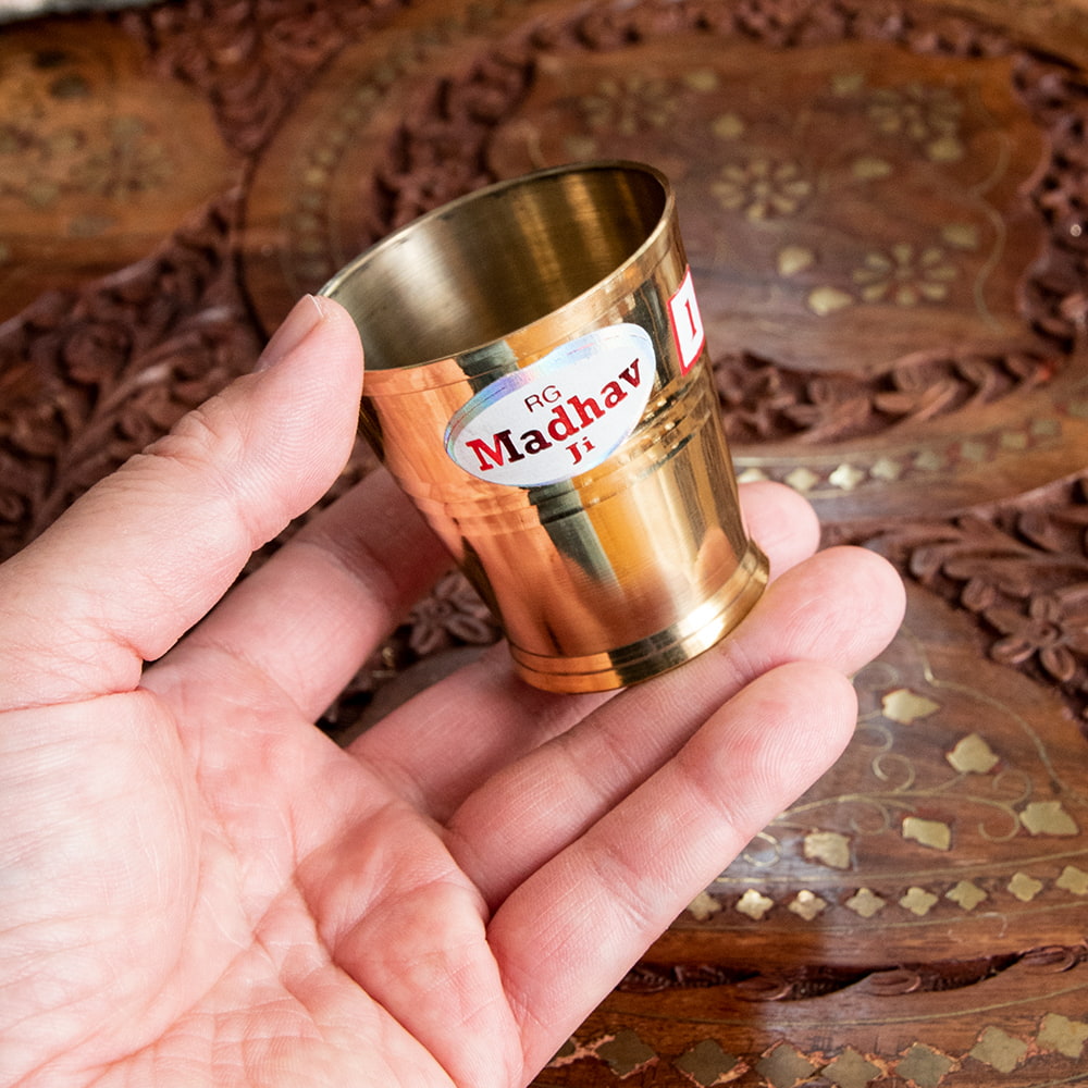 インドの礼拝用 ブラス製 プージャグラス カップ 高さ:約5.7cm x 3個