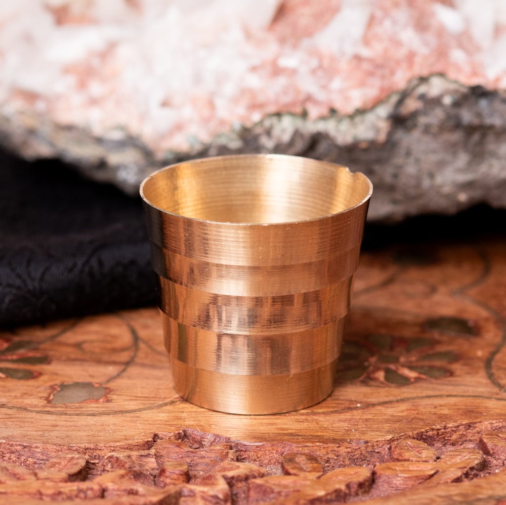【5個セット】インドの礼拝用 ブラス製 プージャグラス カップ[約2.8cm×約3cm] 通販店