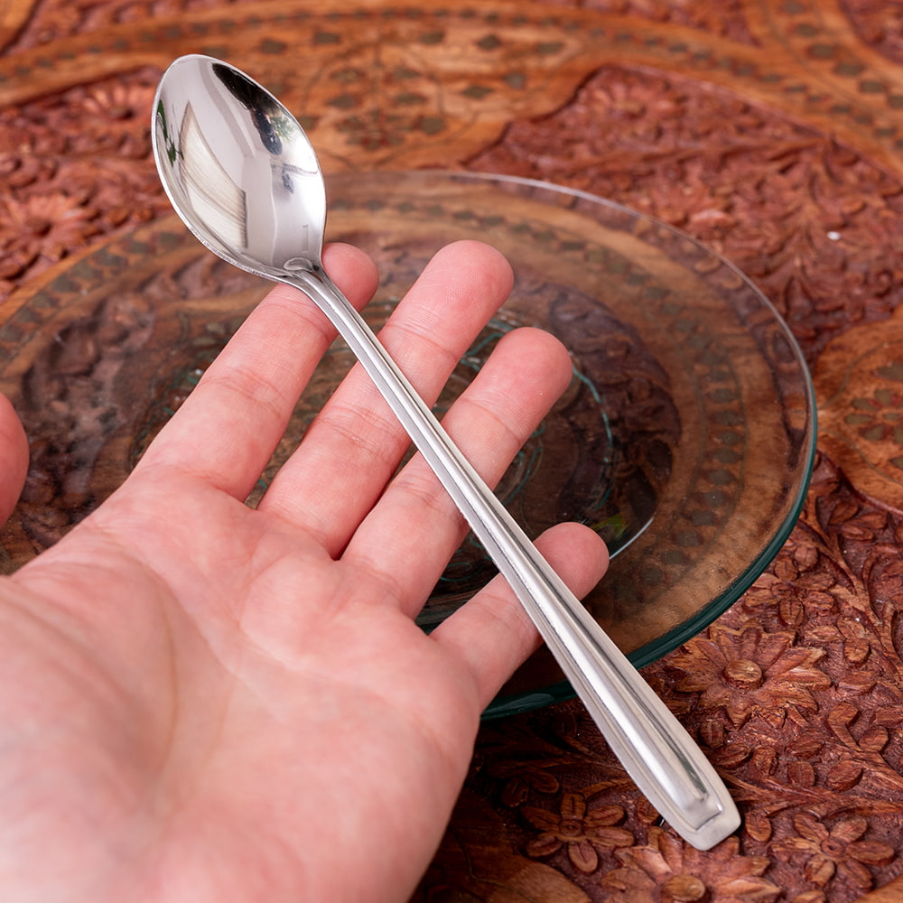 レトロな雰囲気漂う インド製 ソーダスプーン 柄が長い クリームソーダ パフェ フロート デザートに最適 x 12個