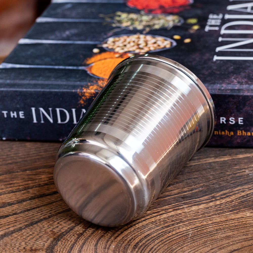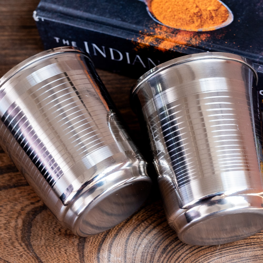 インドに旅行するとよく食堂で水を出す時に出てくるステンレスのコップです。シンプルな一品ですが、これでミルクティーなどを飲めば、すっかりチャイ気分。長く使っていただける一品です。金属製なので飲み物がよく冷え(温まり)、美味しく飲み物を味わうことができます。
