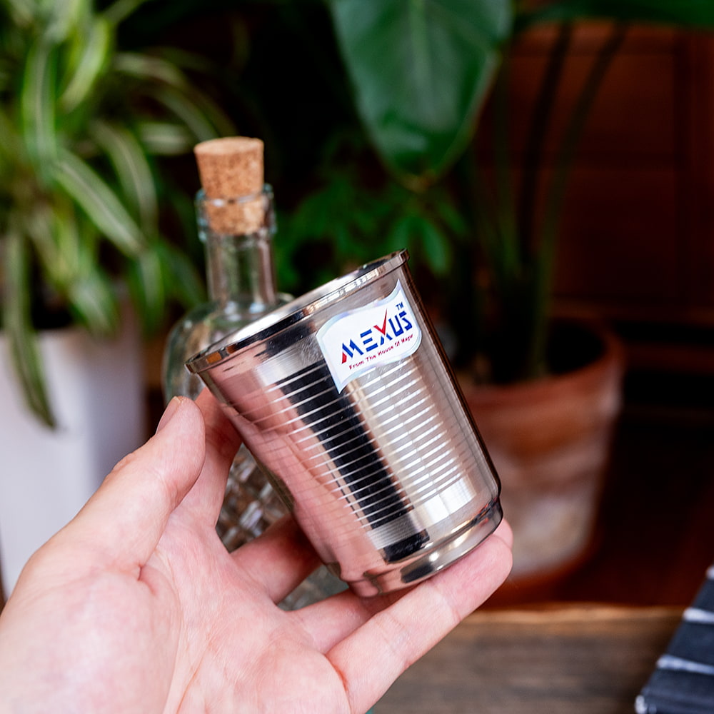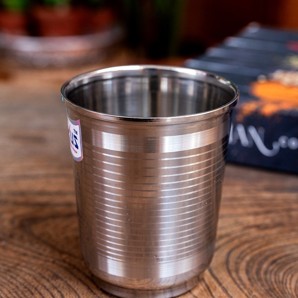 インドに旅行するとよく食堂で水を出す時に出てくるステンレスのコップです。シンプルな一品ですが、これでミルクティーなどを飲めば、すっかりチャイ気分。長く使っていただける一品です。金属製なので飲み物がよく冷え(温まり)、美味しく飲み物を味わうことができます。