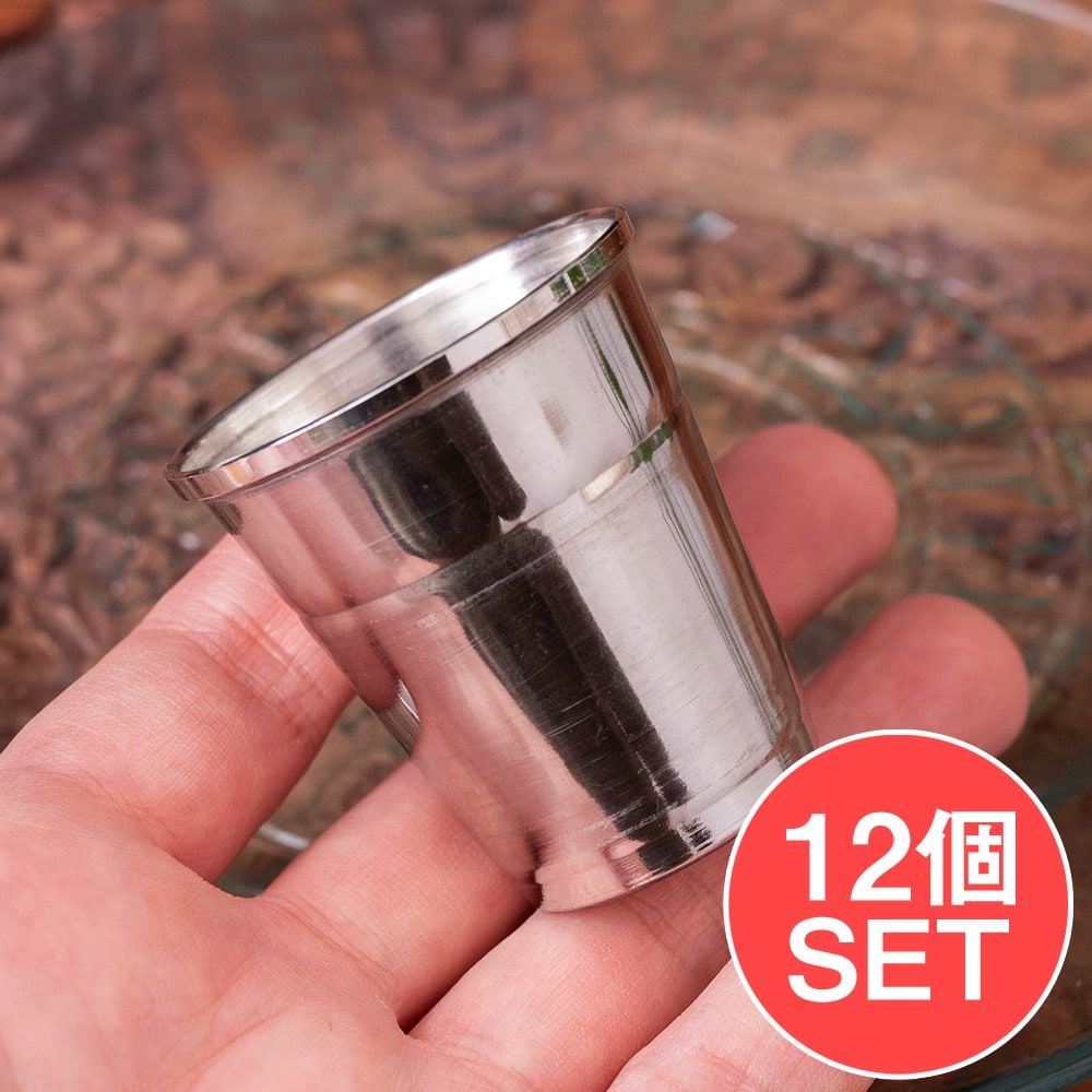 【12個セット】小さなステンレスのチャイカップ プージャグラス ショットグラスサイズ〔約5cm 約45ml〕 通販店