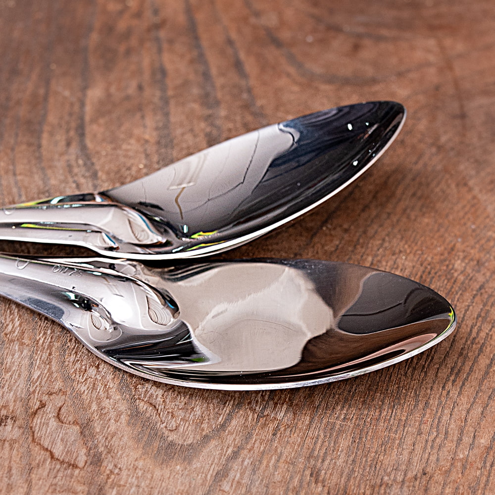 | おことわり | インド製品の為、小キズや若干の凹み等がございます。部分的にグレーの跡がございますが、研磨剤の残りです。よく洗ってからご使用ください。また、ハンドメイド品の為、スプーンの角度には個体差がございます。予めご了承くださいませ。 |