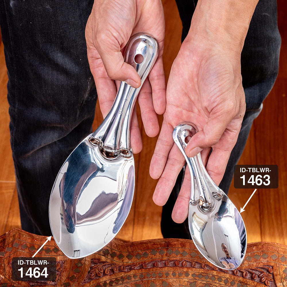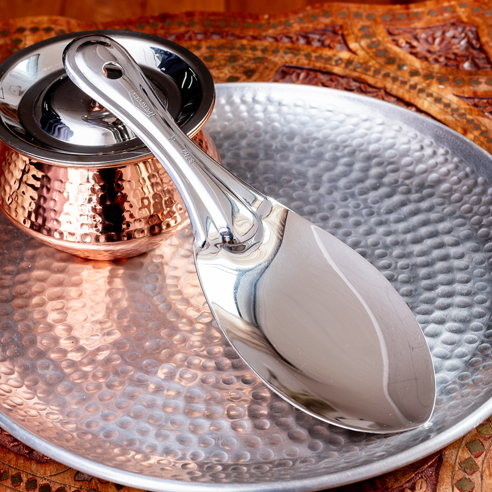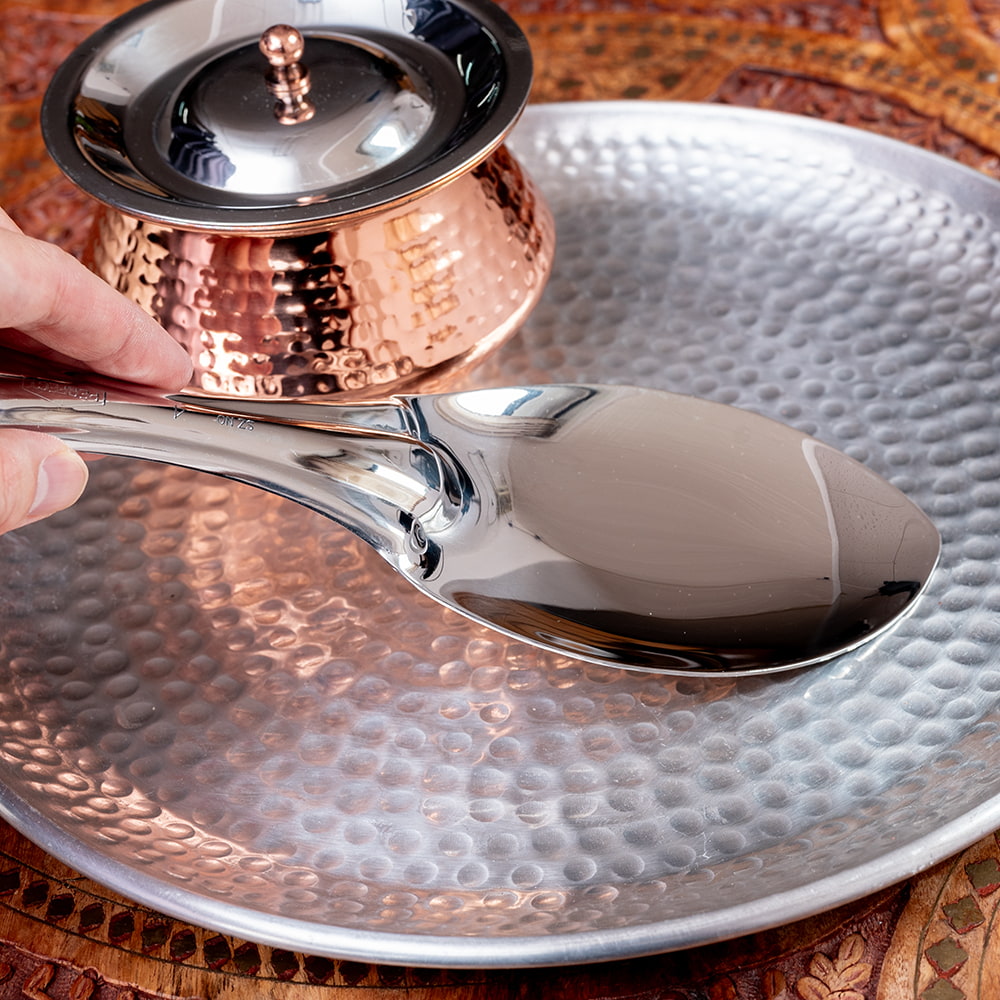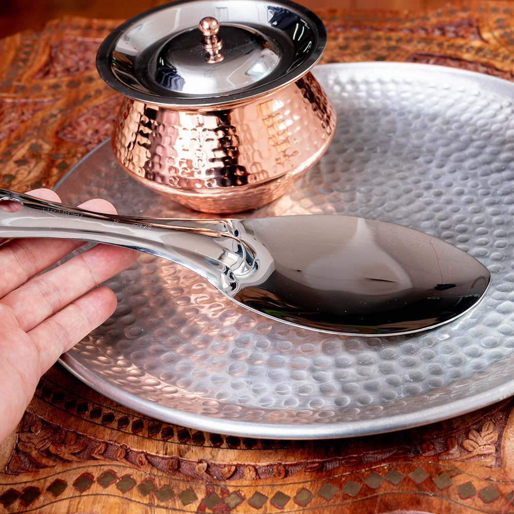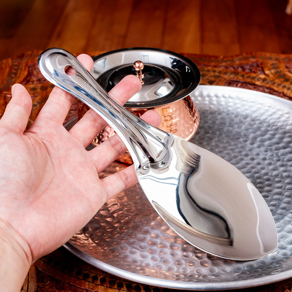 ![【3個セット】インドのしゃもじ サービングスプーン ライスやビリヤニの取り分け等へ サーバースプーン ステンレス製 [25.5cm] 5 - 平らな部分が広く、料理を崩さずにすくいやすいです](https://www.tirakita.com/Zakka2/Photos/set_food_1069_5b.jpg)