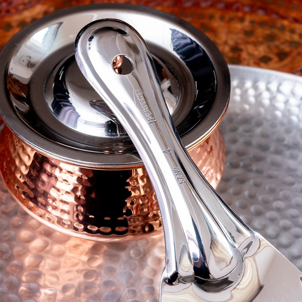 | おことわり | インド製品の為、小キズや若干の凹み等がございます。部分的にグレーの跡がございますが、研磨剤の残りです。よく洗ってからご使用ください。また、ハンドメイド品の為、スプーンの角度、印字されている文字には個体差がございます。予めご了承くださいませ。 |