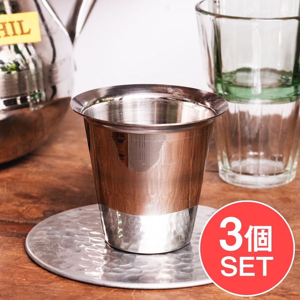 【3個セット】小さなステンレスの南インド式チャイカップ プージャグラス ショットグラスサイズ〔約5.9cm×約6.3cm 約90ml〕
