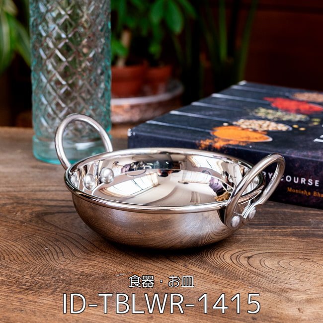カダイもさまざまな物がありますが、こちらはしっかりとした厚みのある高級仕様。持った際にずっしりとして品質の良さを感じられます。厚みがあるので、提供した料理も冷めにくく美味しくお召し上がりいただけます。周りの風景を映し出す、美しい鏡面仕上げのステンレス。シンプルなので、カレーなどのインド料理をはじめとして、さまざまな料理と調和し、より美味しく見えるよう引き立たせてくれます。