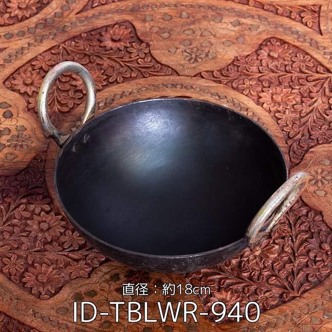 インドの屋台用鉄製カダイ(インド鍋 鉄鍋) - 直径:約18cm(ID-TBLWR-940)の写真です