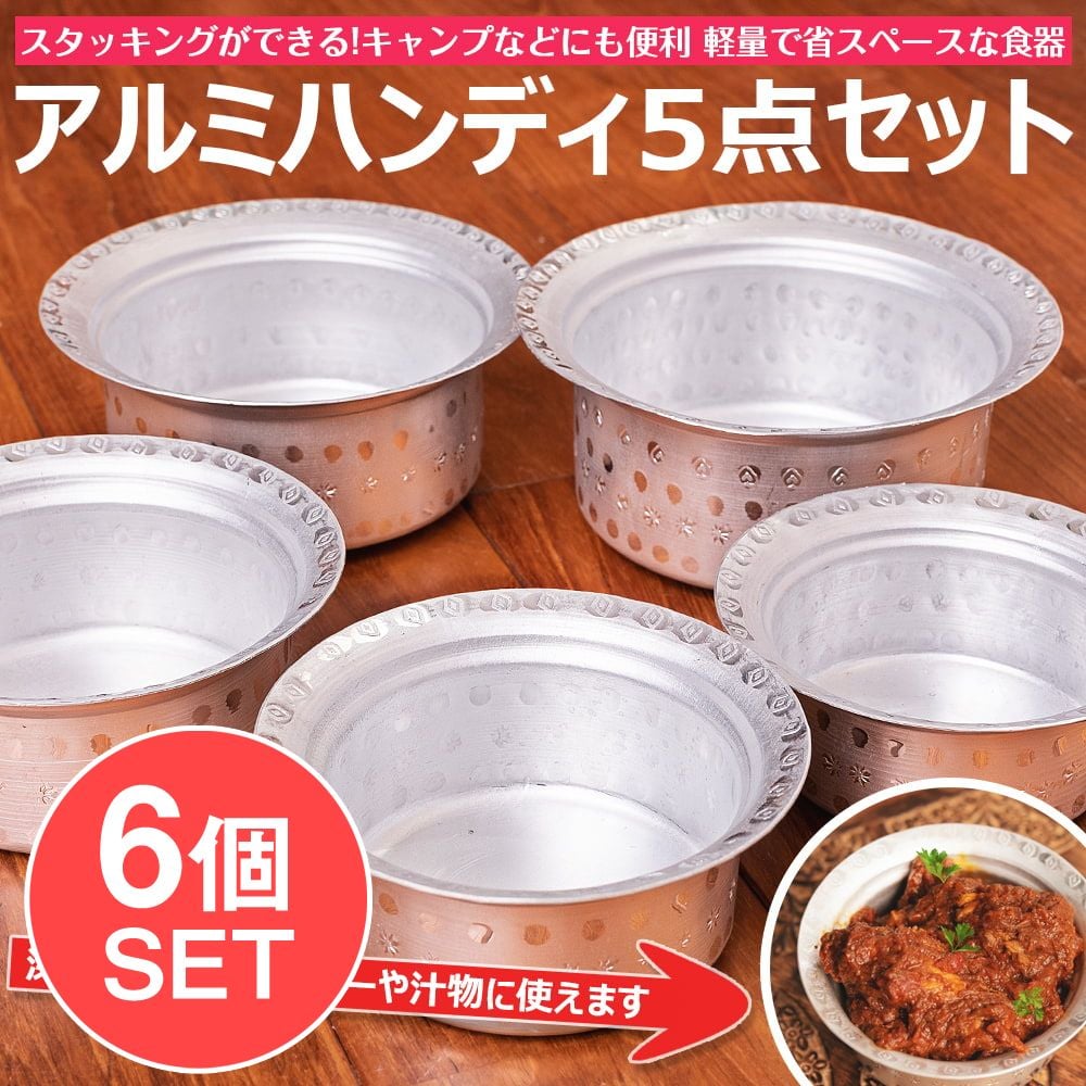 スタッキングができる アルミハンディ5点セット 軽量で省スペース!キャンプにもオススメの食器 x 6個