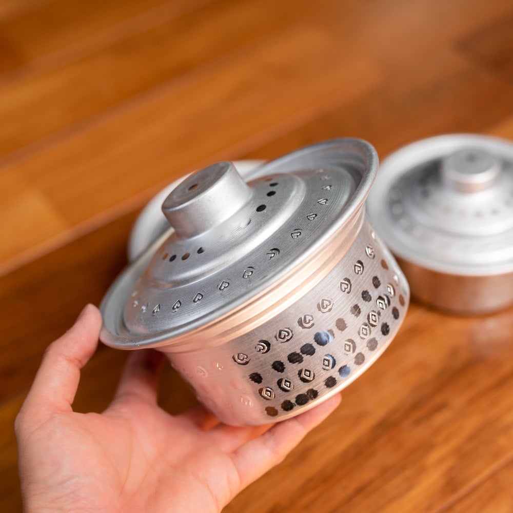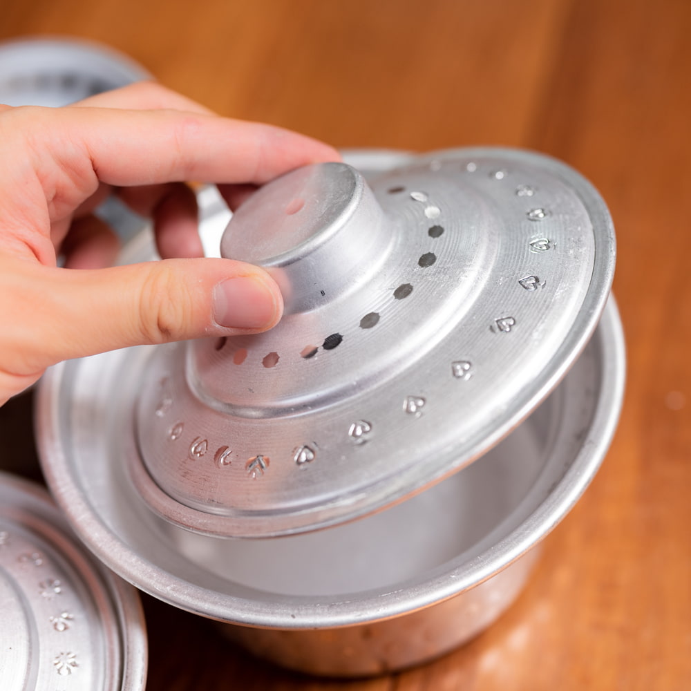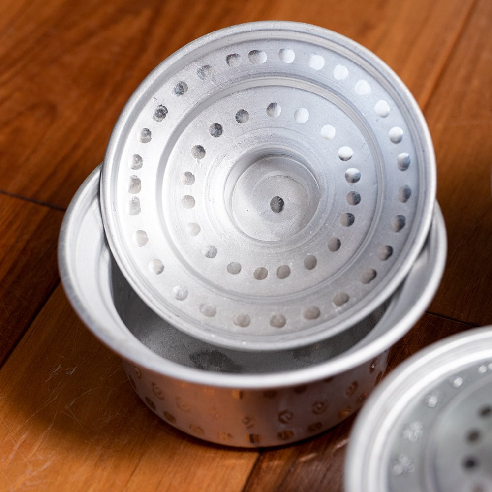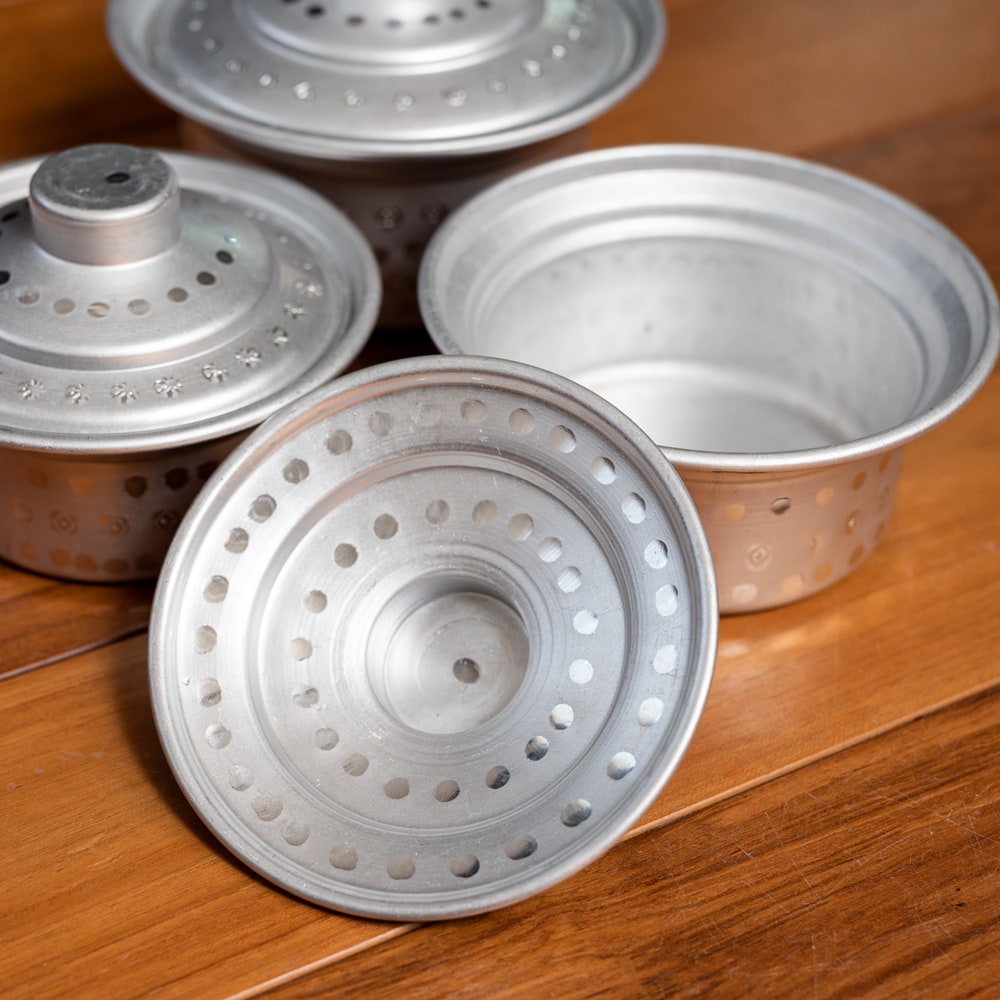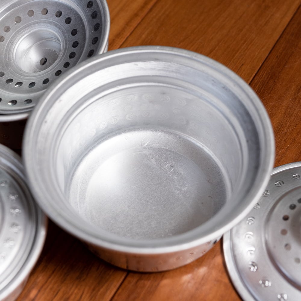 インドからやってきた、蓋付きアルミ食器3点セットです。深さがあるので、様々な用途にご使用いただけます。カレーやスープ類などの汁物、他にもご飯やオカズ、サラダ類などの食器としておすすめ。アルミ独特の削り出しと、インドらしいアンティーク感漂う無骨なテイストが、とても良い雰囲気の食器です。