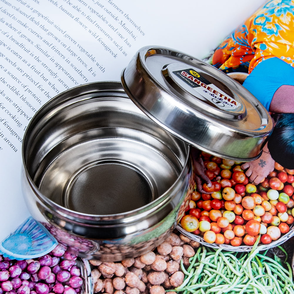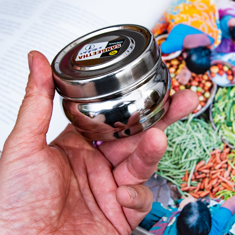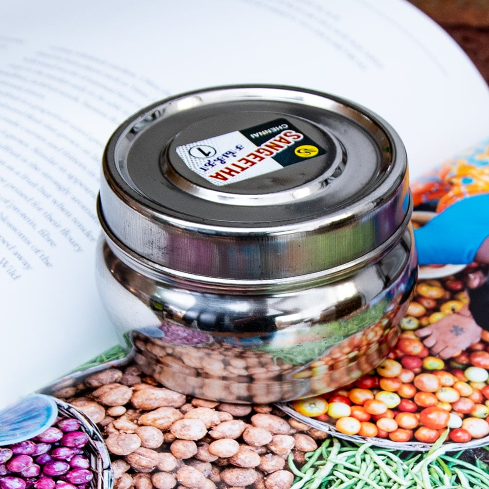 スパイスを保管しておくのに便利なマサラケースです。スパイスの持ち運びなどにも便利ですが、アクセサリー類などを収納する為の小物入れとしてもお勧めです!■丈夫なステンレス製