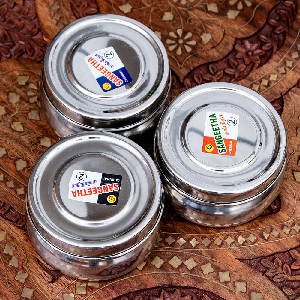 【6個セット】ステンレスのマサラケース・小物入れ 直径:約7.5cm