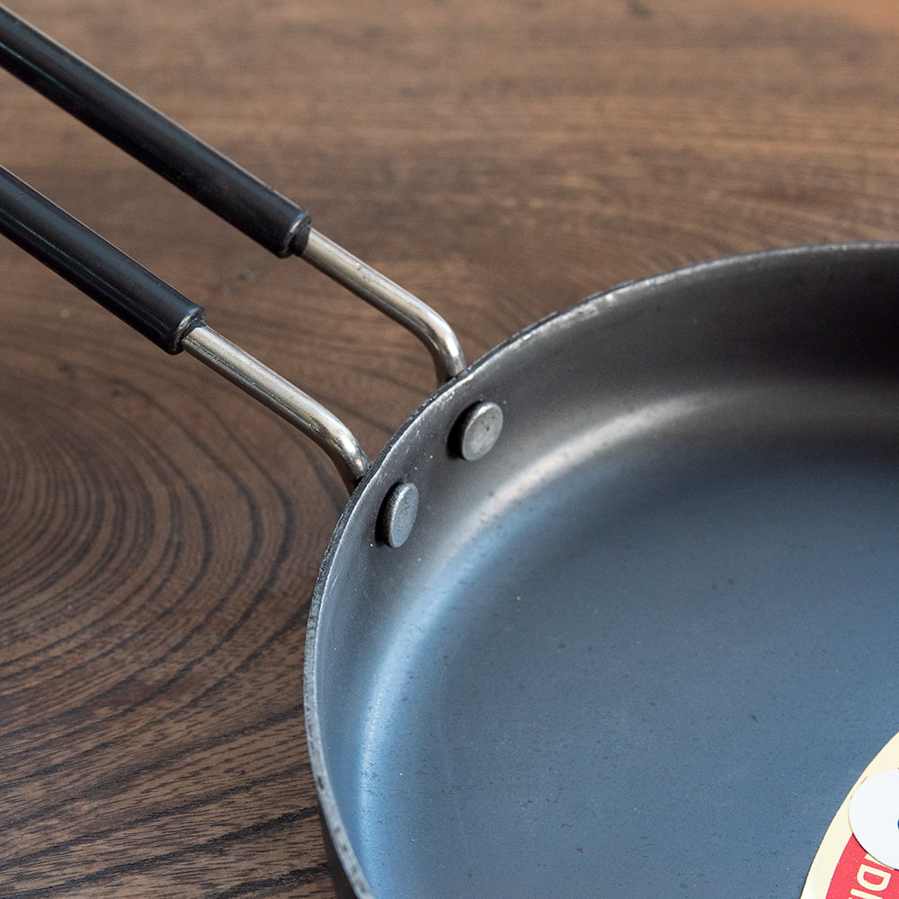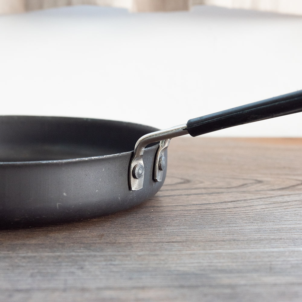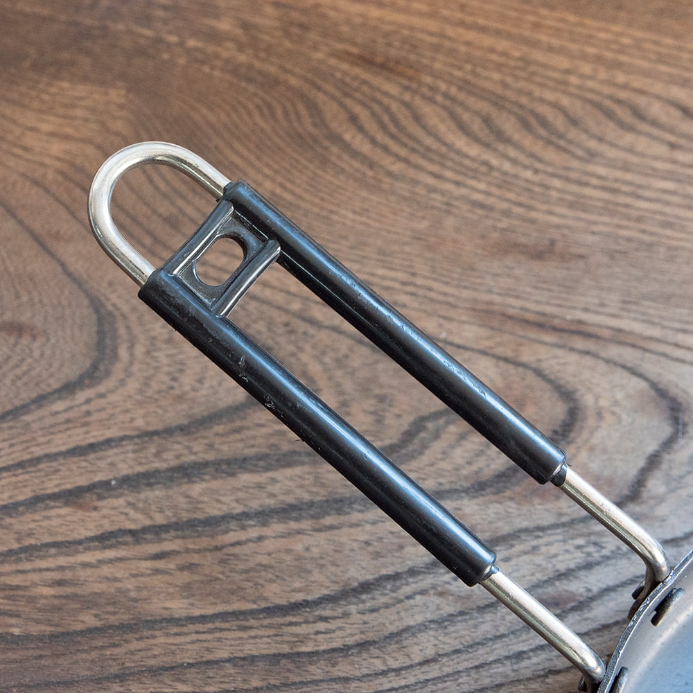 程よく深さがあり、大きさも程よく。1〜2人前の料理を作るのにぴったりなサイズです。持ち手はプラスチックで覆われていますので、熱くならず素手で持つことが出来ます。
