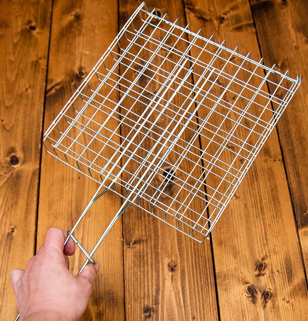 ストリートやキャンプで活躍!カゴ型の挟み焼き網です。