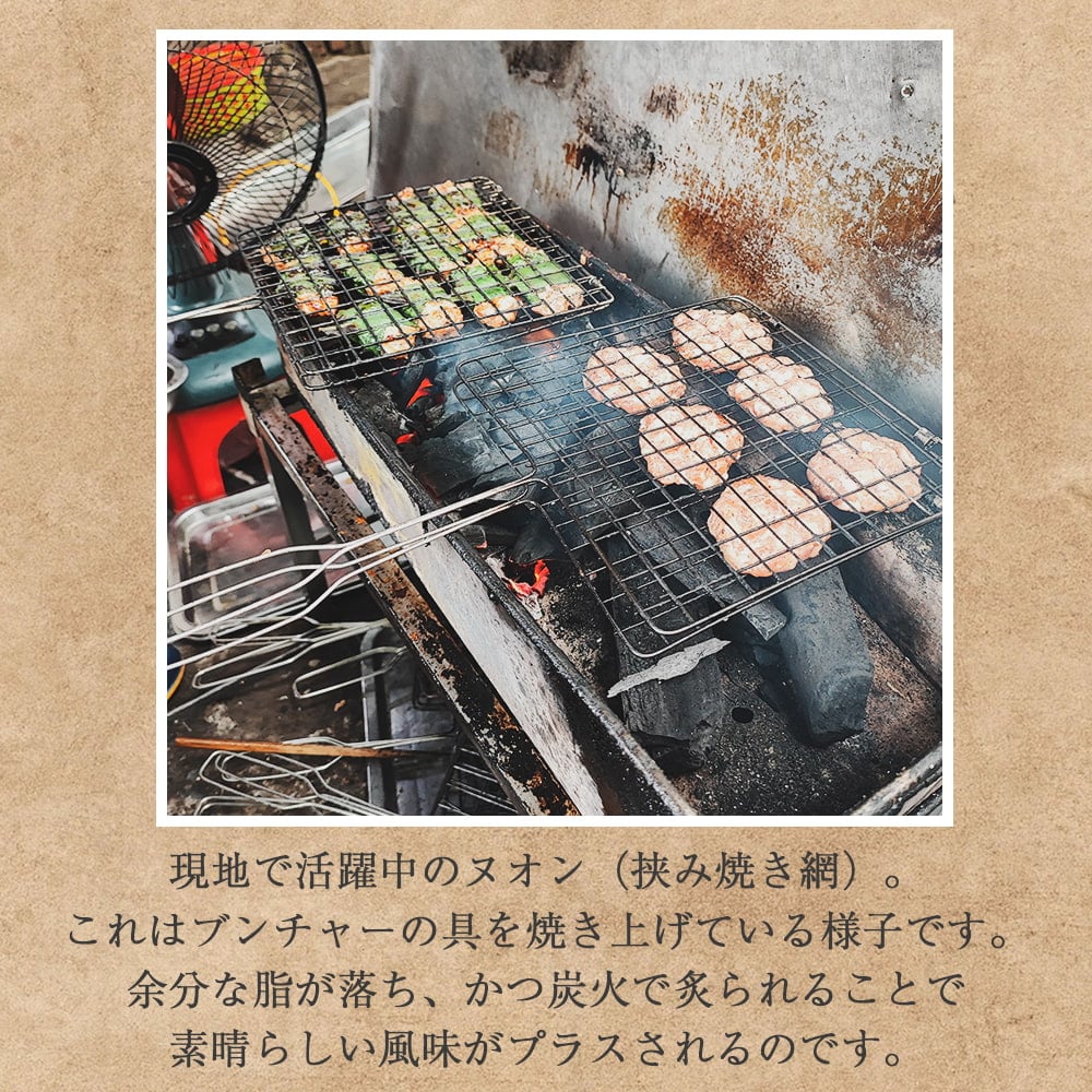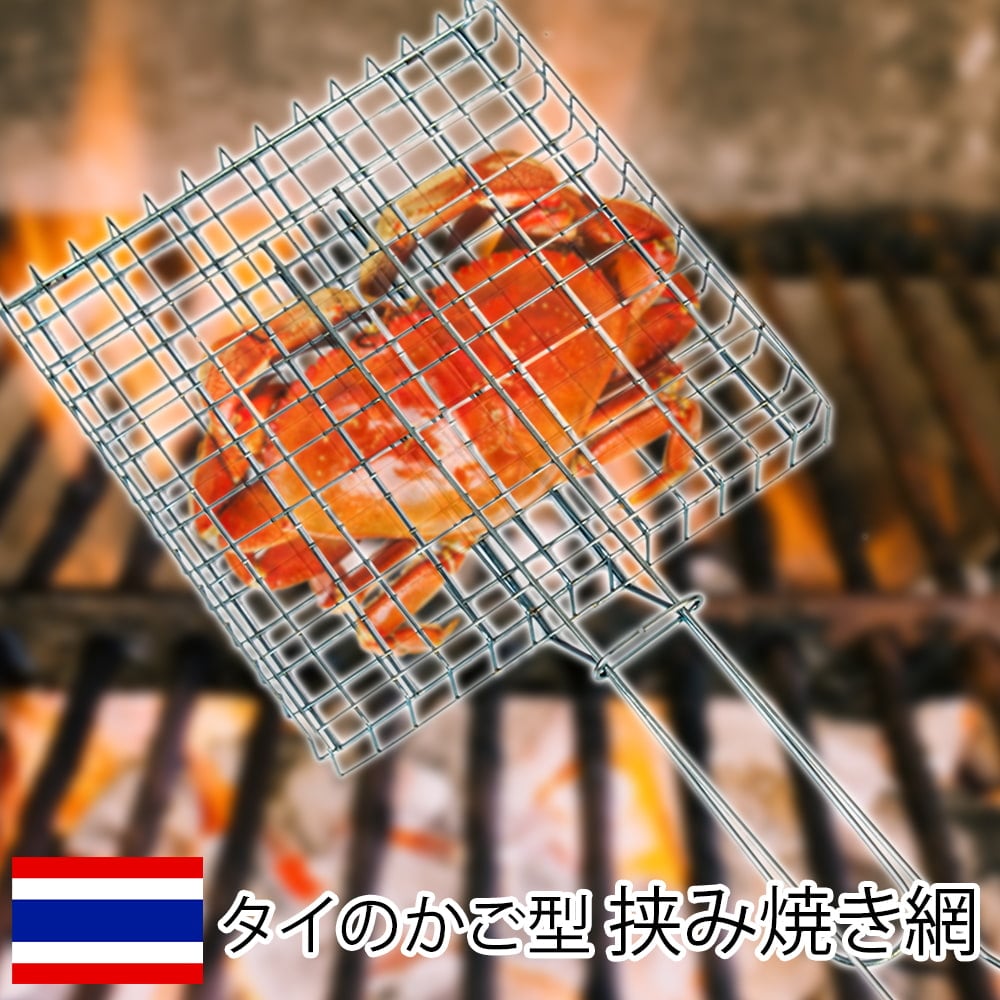 屋台や家庭で用いられている焼き網です。真ん中でぱかっと開いて魚やお肉を挟み、直火で炙ることができるスグレモノ。挟んだままひっくり返せるので箸を使わずに調理できてとっても便利ですね。カゴ型になっており3cmほどの空間があるので厚めの肉なども挟めます。タイではカニや巻き貝を直火で焼くのにつかっています。