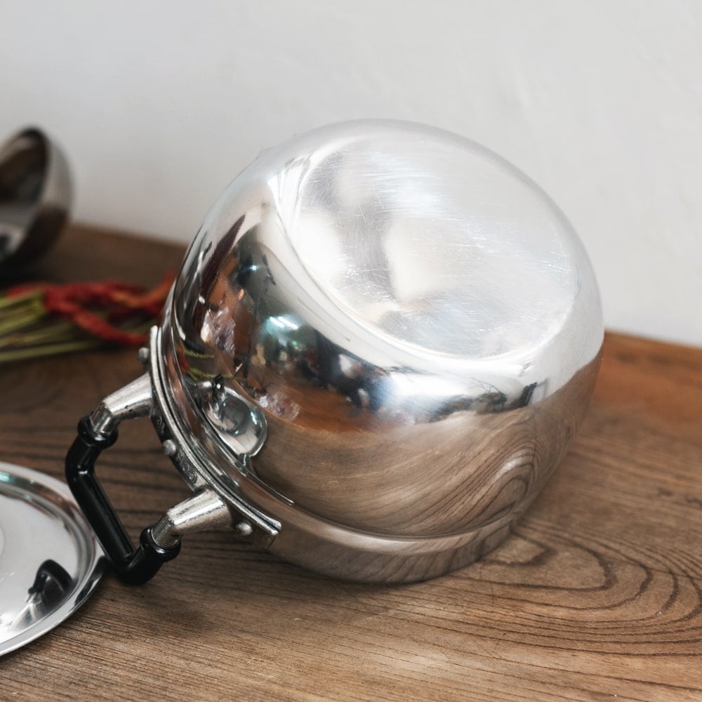 タイといえば屋台料理。旅人だけでなく、現地の人々も日常的に朝・昼・晩と屋台で食事を楽しんでいます。激辛フードから、生姜の効いた優しいお粥まで、タイのレストランや屋台で提供される料理は多岐にわたり、道行く人々の胃袋を掴んで離しません。こちらはそんな、本場タイの屋台やレストラン、家庭でも使われている両手鍋です。素材はアルミでできており、軽量で扱いやすい。なんともかわいい丸っこいフォルムで、料理を楽しくしてくれるお鍋です。