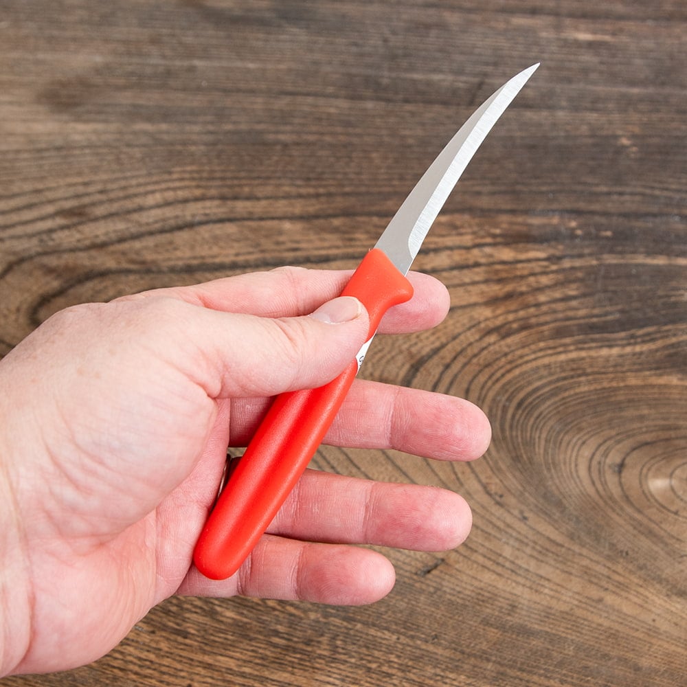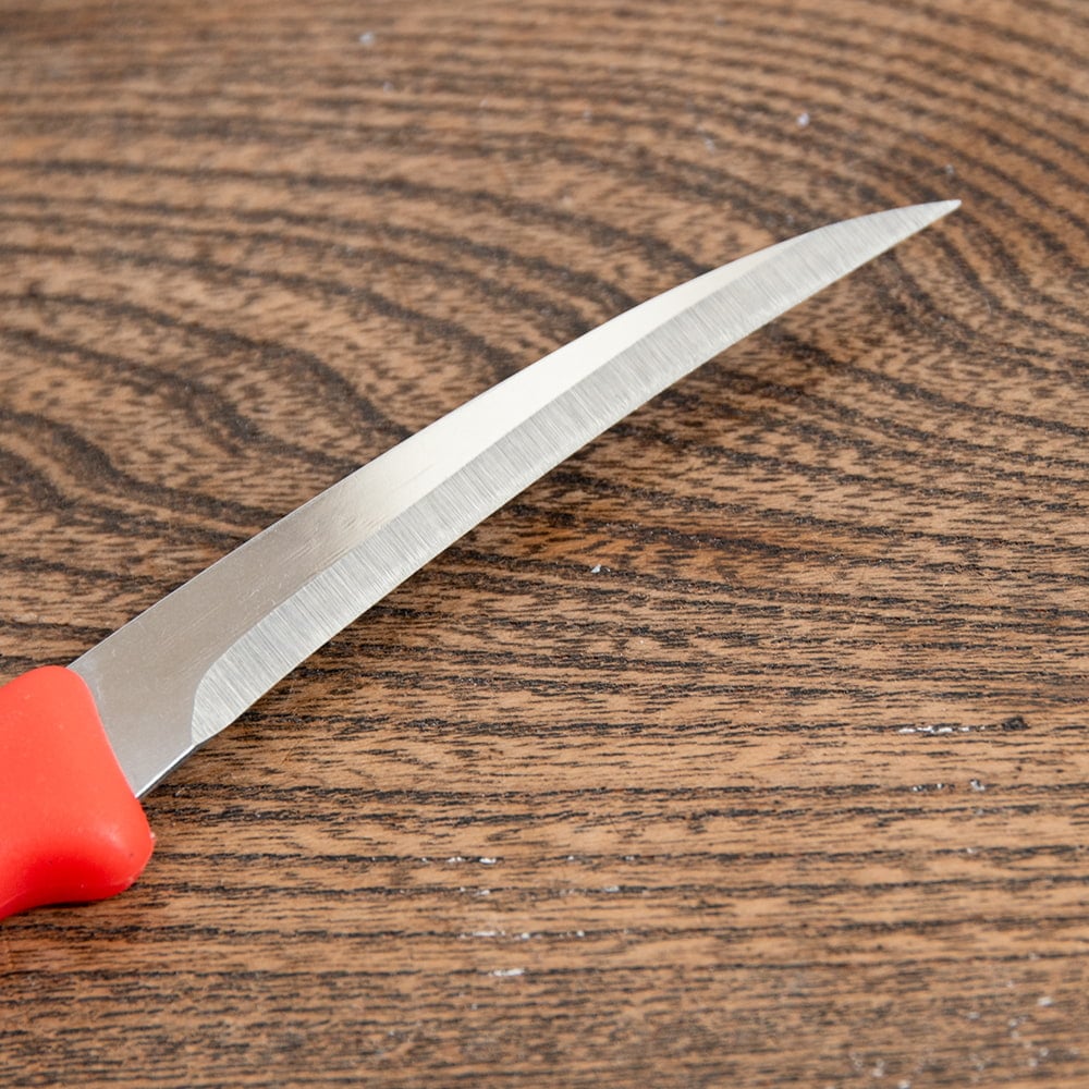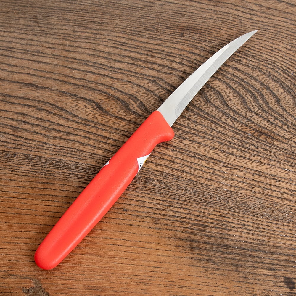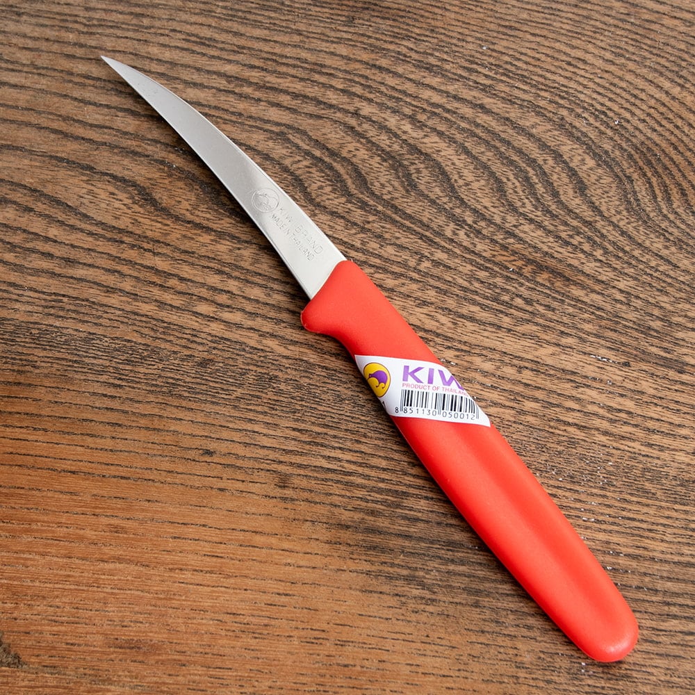 微笑みの国、タイからカービングナイフが届きました。カービングとは果物や野菜に施す飾り切りのこと。宮廷料理に起源があり700年もの歴史を持つとされています。他国にも飾り切りの文化はありますが、最も有名で華やかに展開したのがタイ式カービングです。こちらのナイフはそんな本場タイで使われているポピュラーなカービングナイフ。人気のあるKiwiブランドの細身ナイフです。