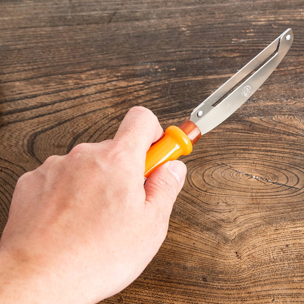 他にも、果実や野菜の皮むきに使うことができます。力を入れやすい形をしているので、少々硬めの皮むきにも便利ですね。
