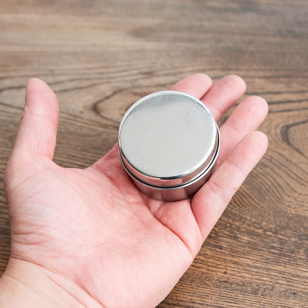 ステンレス製なのでにおいが移らず、お手入れも楽ちんです!手のひらにちょうど収まるコンパクトサイズで、スパイスをちょうど良い量保管しておけますね。