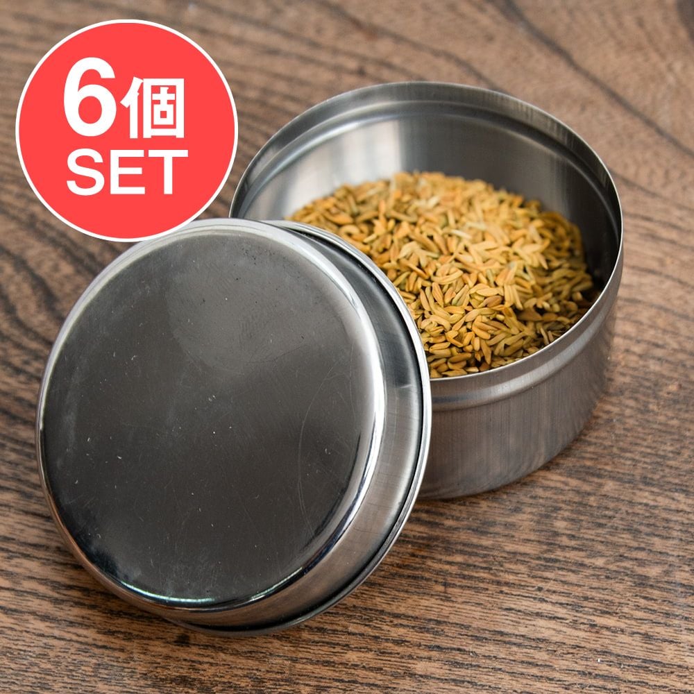 【6個セット】ステンレスのマサラケース・小物入れ 直径5.5cm 高さ3.5cm 通販店