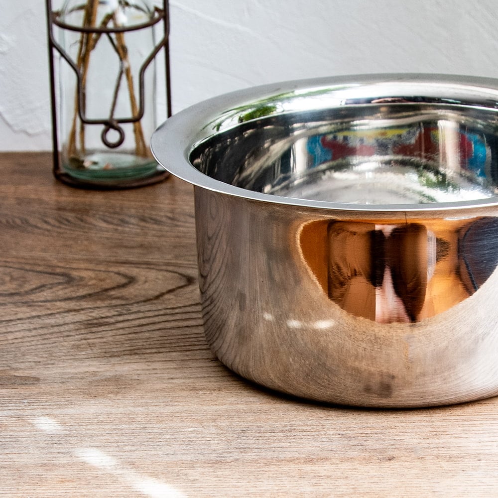 取っ手のないインドの鍋 バゴーナー パティラ 容量:1.3L程度 外径:約19cm ステンレス製 x 6個