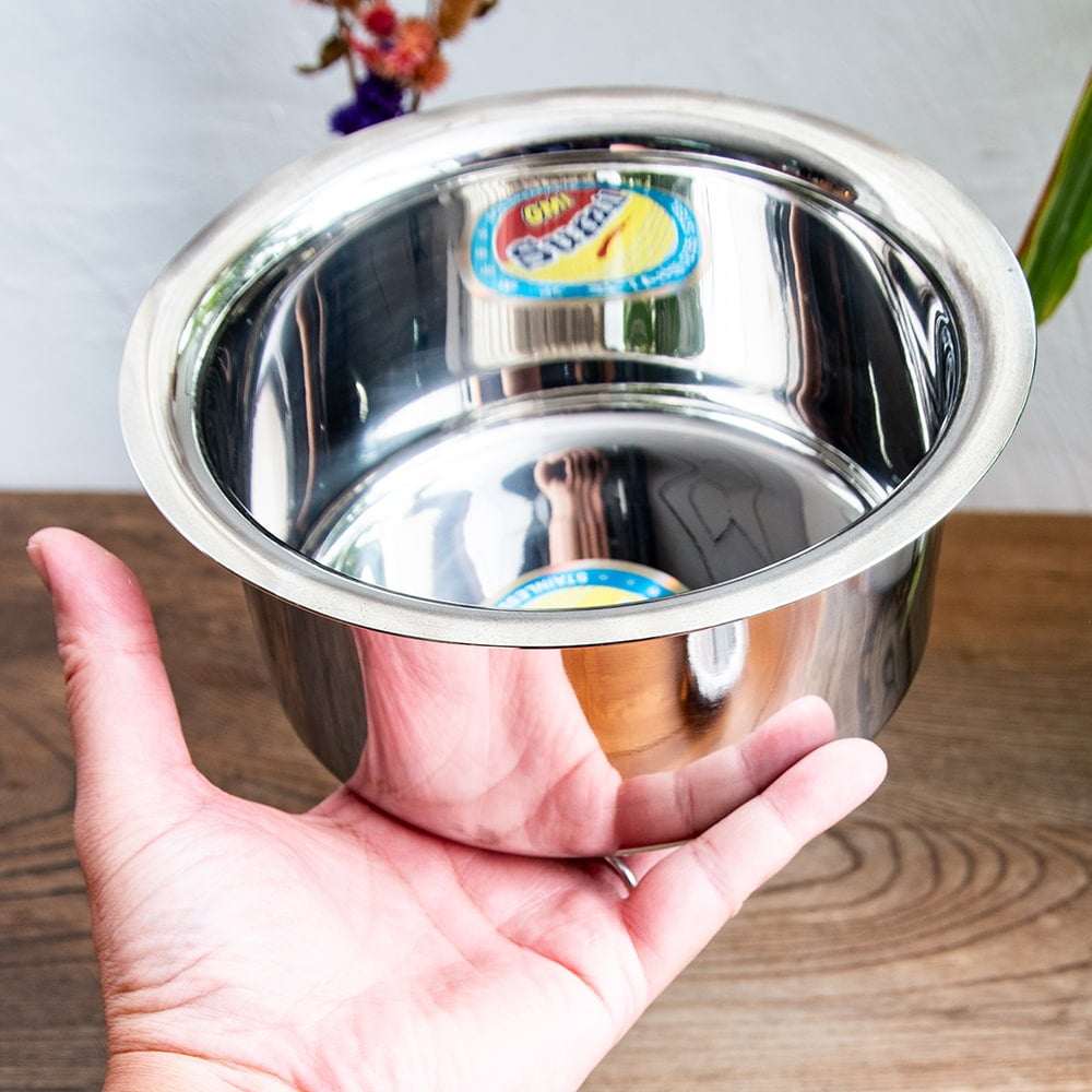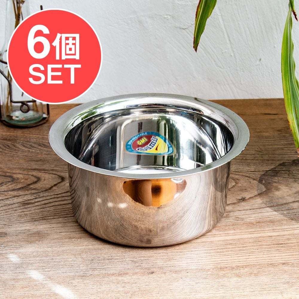 【6個セット】取っ手のないインドの鍋 バゴーナー パティラ 容量:1.3L程度 外径:約19cm ステンレス製 通販店