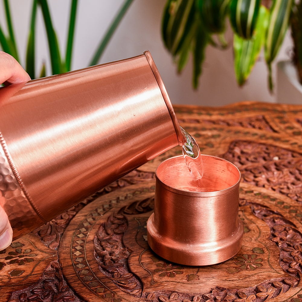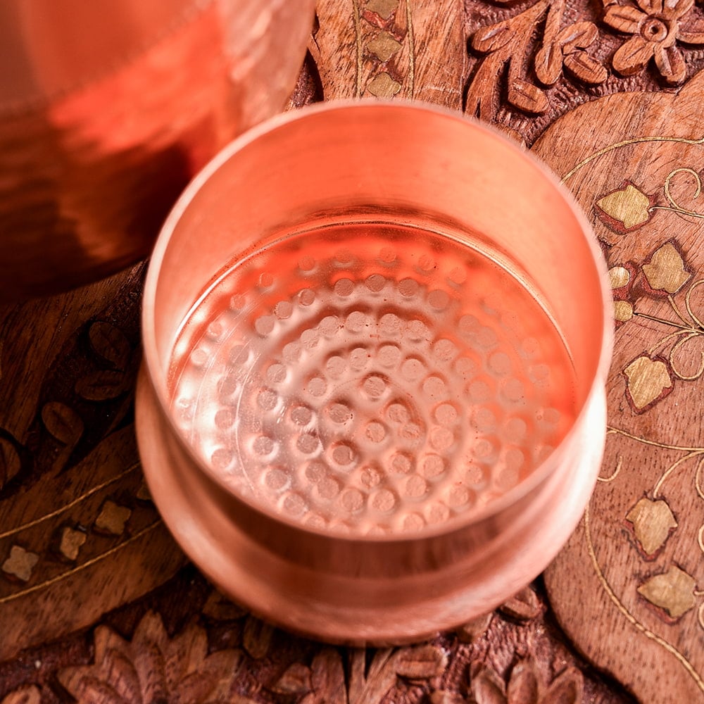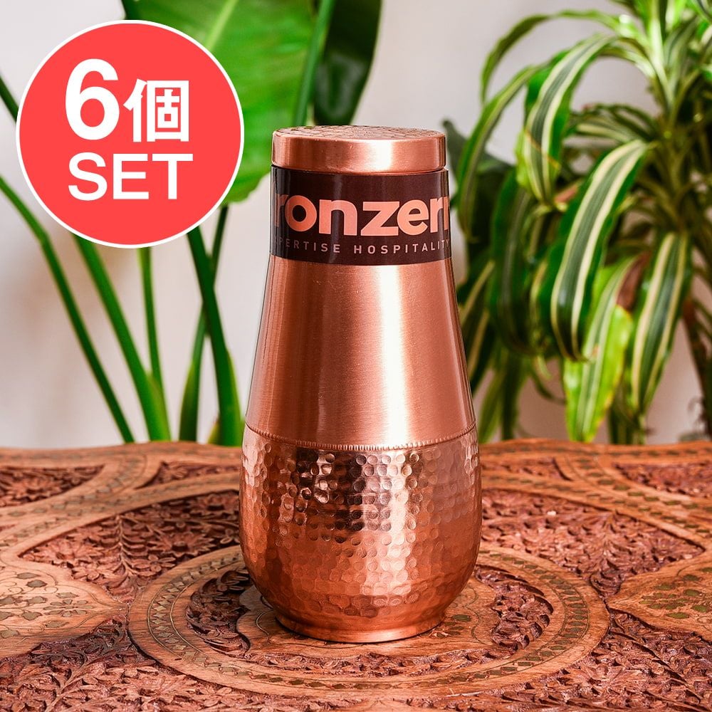 アーユルヴェーダ 高級銅製コップ付き水差し 槌目仕上げが美しい ウォーターカラフェ ピッチャー 冠水瓶〔約1000ml〕 x 6個