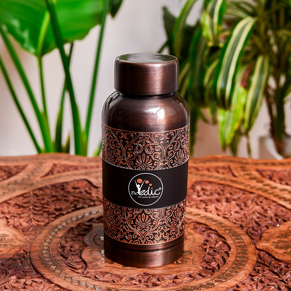 アーユルヴェーダ 高級銅製ウォーターボトル 水筒 ダマスク柄が美しい マグボトル 水差し〔約600ml〕 x 6個
