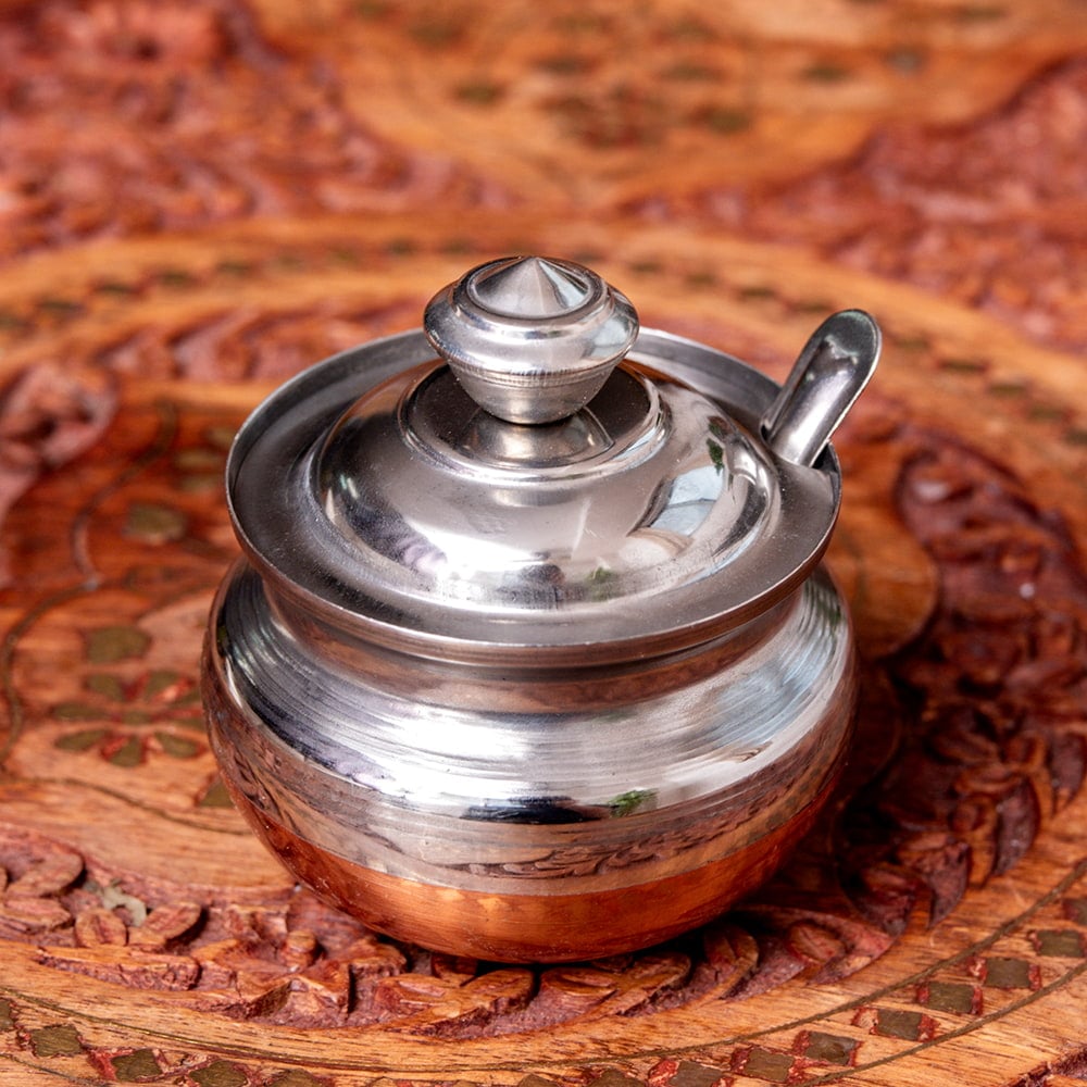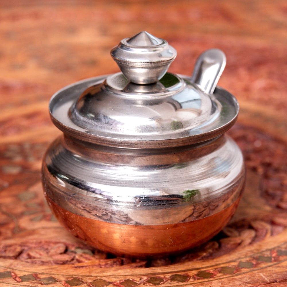 現地では主にギーを入れるのに使われていますが、砂糖など調味料入れにもおすすめです