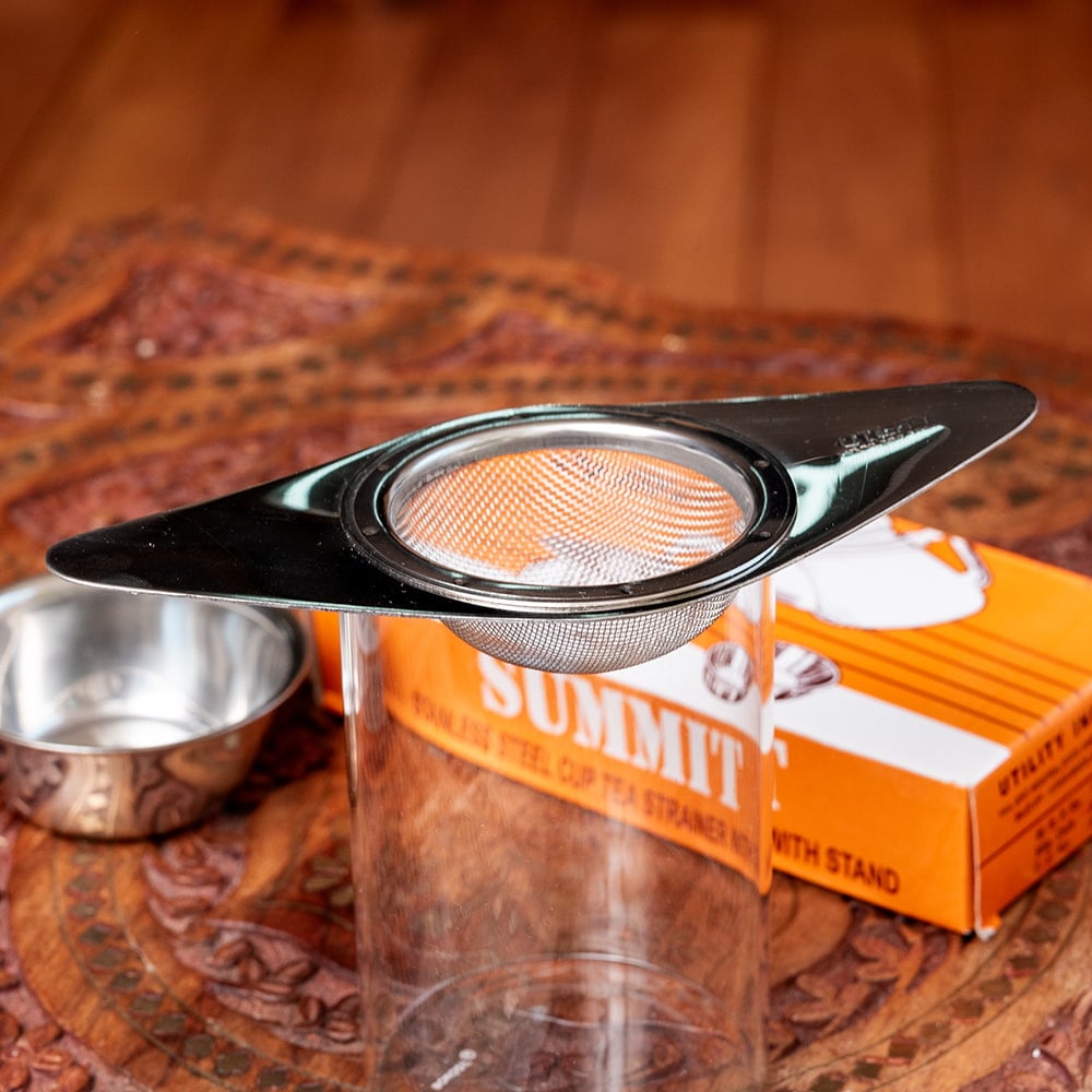 受け皿付き ティーストレーナー インドのレトロデザイン チャイ用の茶こし器 紅茶や緑茶 ハーブティー x 6個