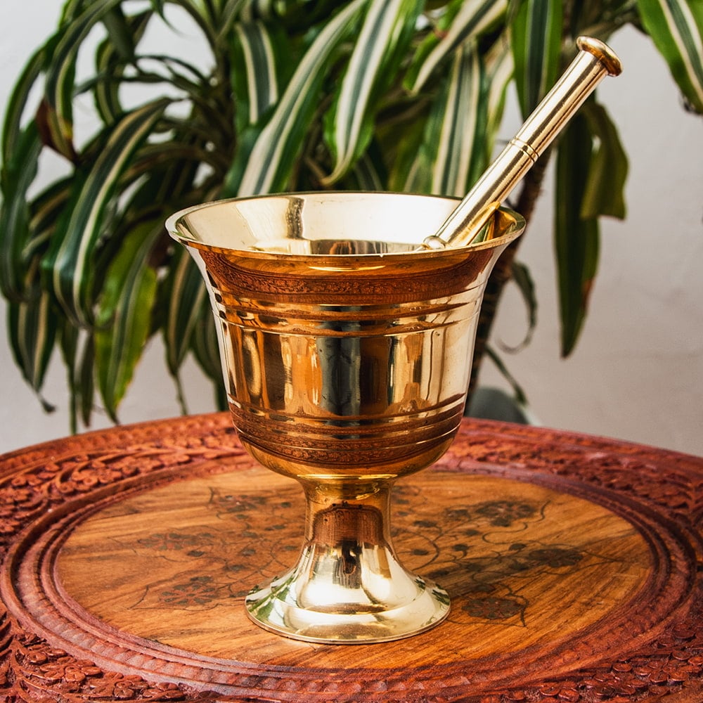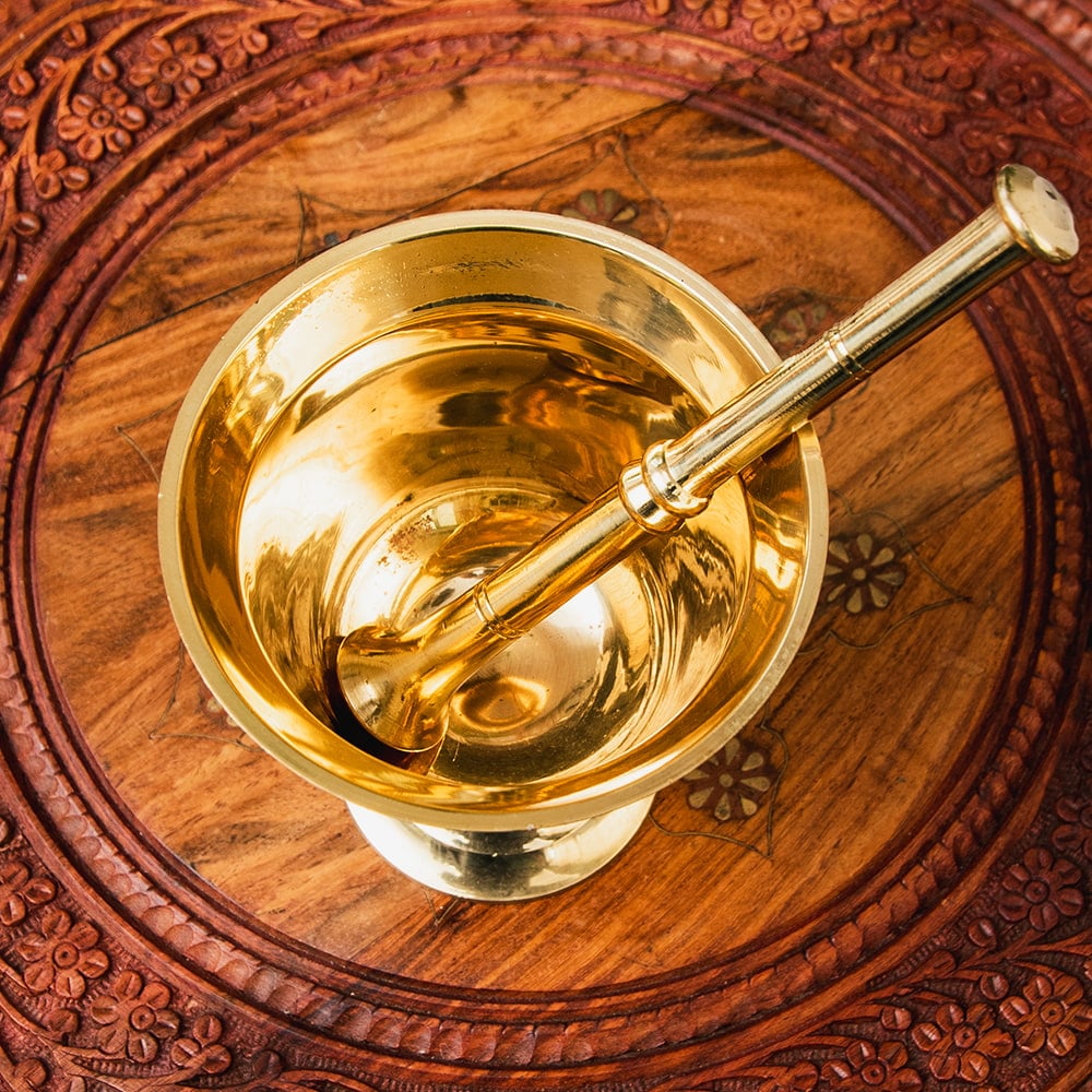 古来よりインドやネパールで仏像を作るときに使われている真鍮製で、錆びず、大変高級なものです。仏像に使われているだけあって重さもずっしりとしていますので、スパイスの擦り心地も抜群です。何年たっても変化しませんので、10年20年と長くお使い頂ける実用的な一品です。■スパイスを自分でつぶす理由
