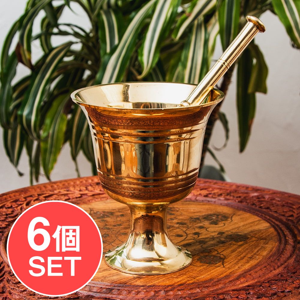 インド・デリーから届いたエレガントな真鍮製のスパイスグラインダーです。マハラジャの邸宅にありそうなグラマラスな造形が素晴らしいですね。単なる調理器具の域を越えて、飾るだけでも空間がキリリと引き締まる素敵な一品です。お値段は決して安くありませんがスパイス料理・マサラ料理を愛好する人ならぜひ身の回りに置いておきたいアイテムですね。■スパイスを自分でパウダーに!