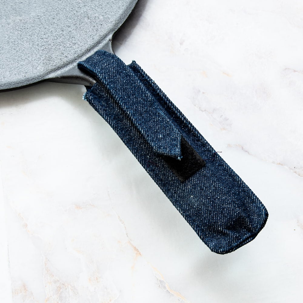 もちろん従来のチャパティパン同様僅かな湾曲がありそれが無駄なく生地に熱を伝える仕様になっています。持ちてが熱くなりますので付属のデニムカバーをご使用ください。