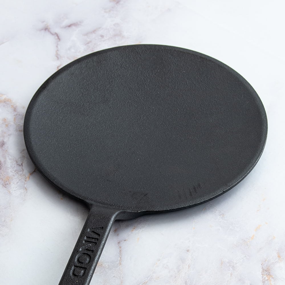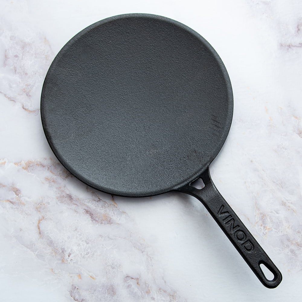 ティラキタではこれまで伝統的なスタイルのチャパティパンを扱ってきましたが、今回入荷したこちらのチャパティパンはキャストアイアン(鋳鉄)製のチャパティパンです。従来のチャパティパンに比べてさらに厚み(約4.5mm)がありどっしりと重いため蓄熱性が高く、更に鋳物ならではの表面のざらりとした質感はまさにチャパティ最前線といった趣があります。インド調理器具もここまで来たか・・・!と思わず息をついてしまいますね。しっかりした鋳鉄製で、世代を越えて受け継ぐことのできる品質です。