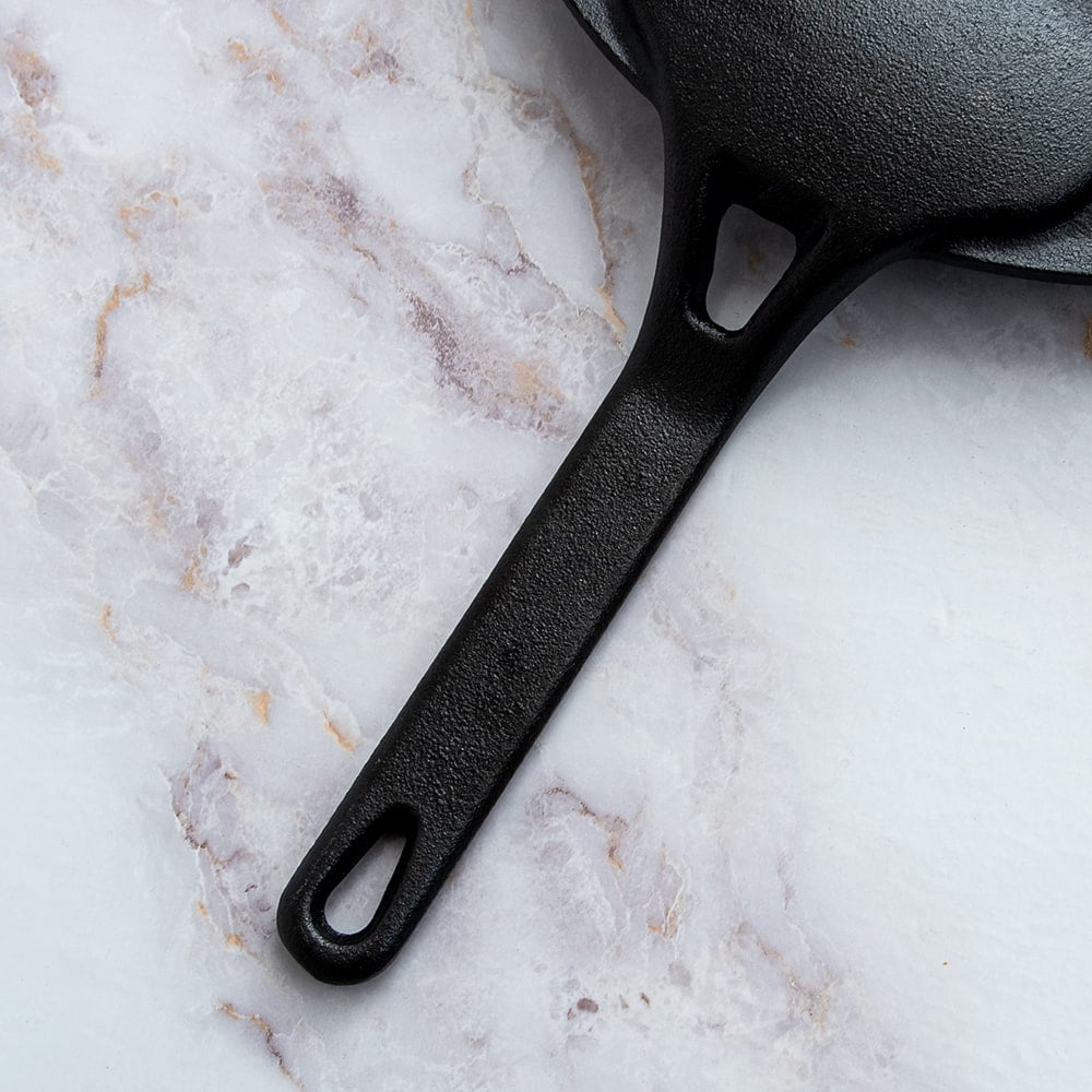 すでにシーズニング処理がされていますので、鉄鍋のような焼き慣らしは必要ありません。軽く水洗いして乾かしたらすぐに使うことができます。使用後また軽く洗って乾かした後に薄く油を広げれば更にシーズニングが層を成していき、成長していく楽しみがあります。酸化被膜が剥がれてしまいますので、トマトやレモンなど酸性のものが触れるのはお避けください。また、乾燥させる際にタオルに黒い残留物が付着するのは正常で安全です。こちらはシーズニングの層が金属に完全に結合していない場合に発生するもので、どのブランドでも共通のものとなります。