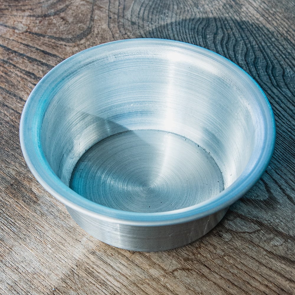 インドからやってきたこぶりなアルミカップです。アルミ独特の削り出しと、光沢感が味わい深く、シンプルながらもどこかぬくもりを感じる食器です。少し大振りなサイズのカップ。サモサなどのインド軽食のほか、スナックなどをいれるのに良さそうなサイズ感です。
