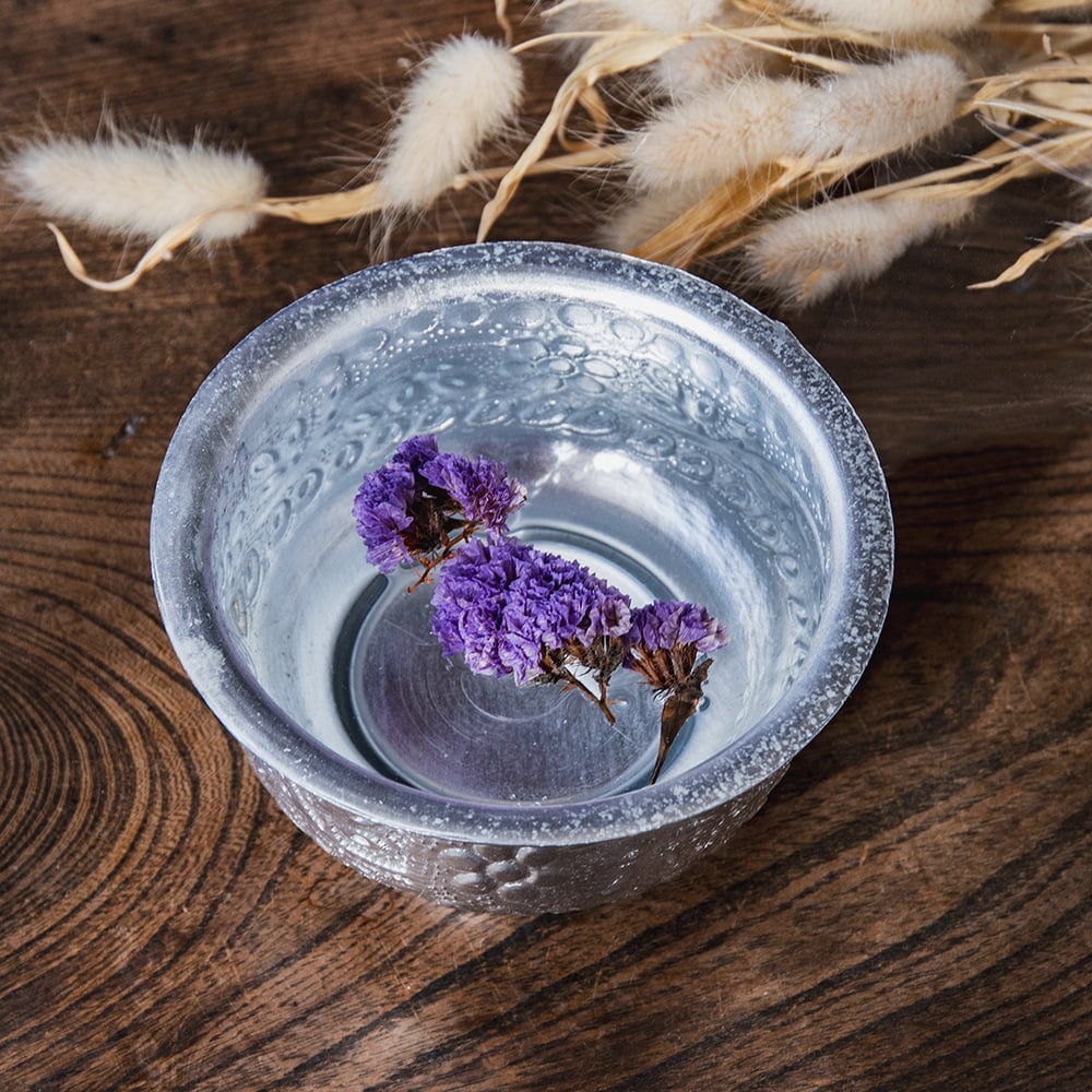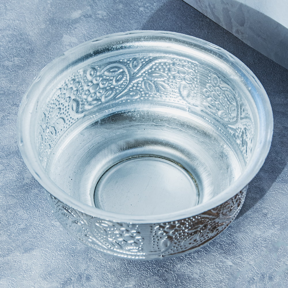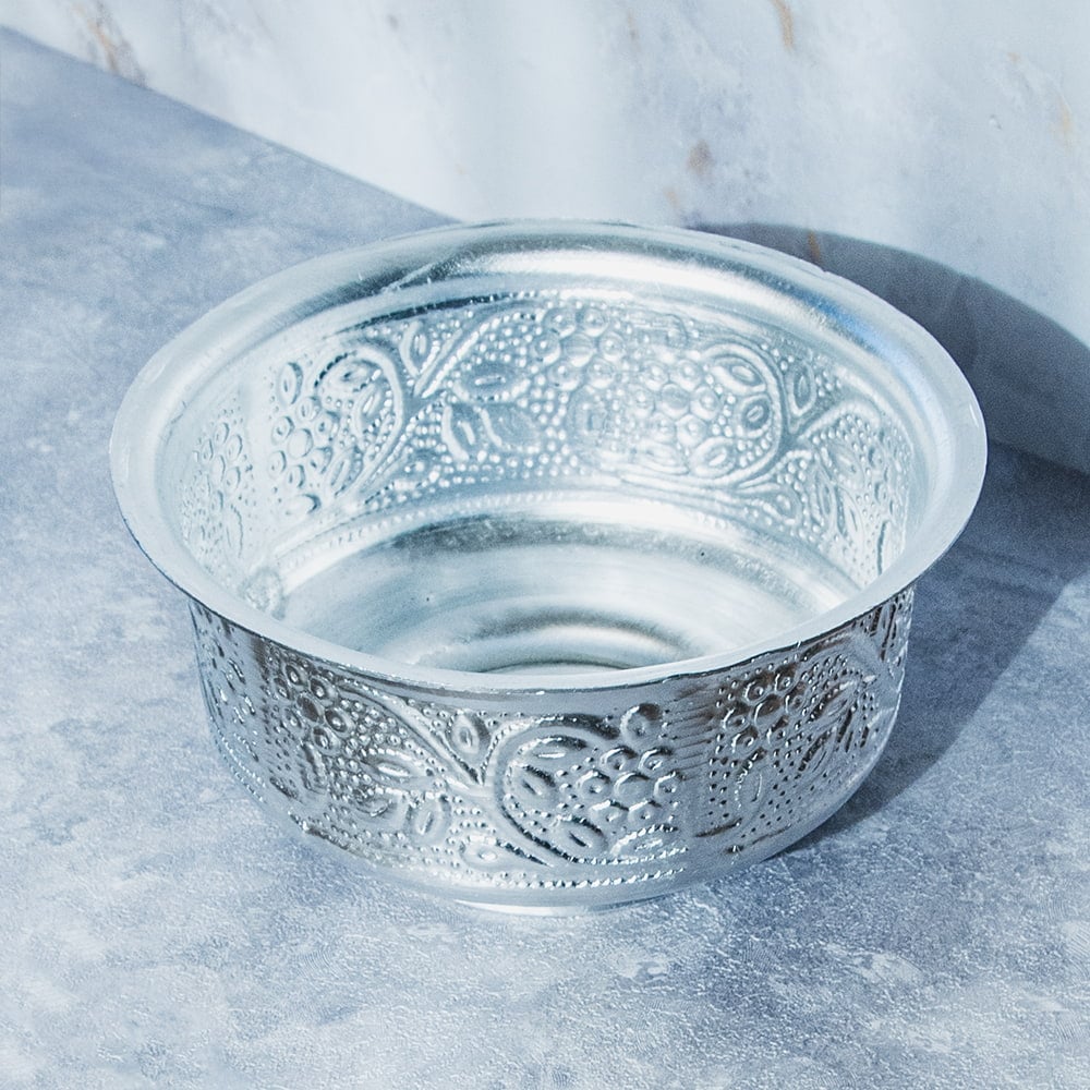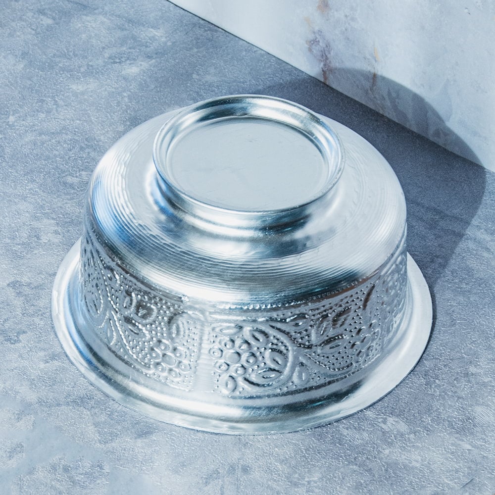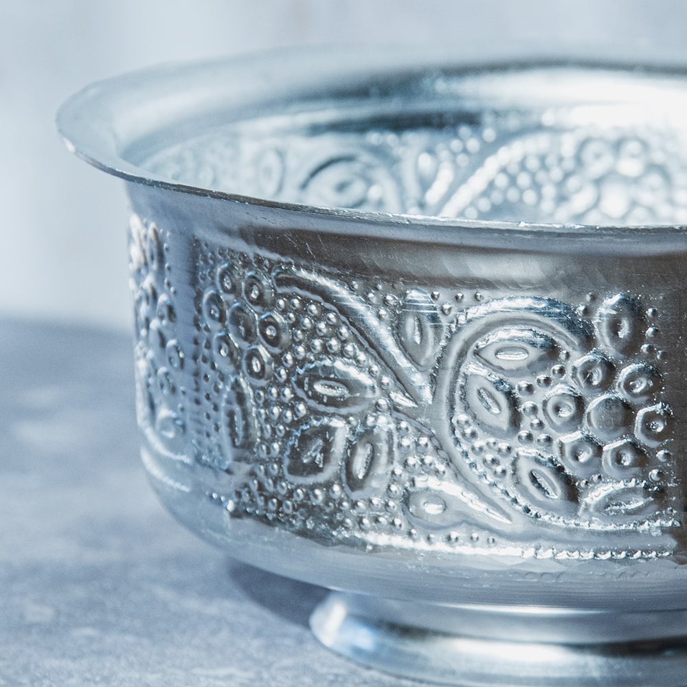 インド伝統唐草エンボスの脚付きアルミボウル 水盆 直径13cm x 6個