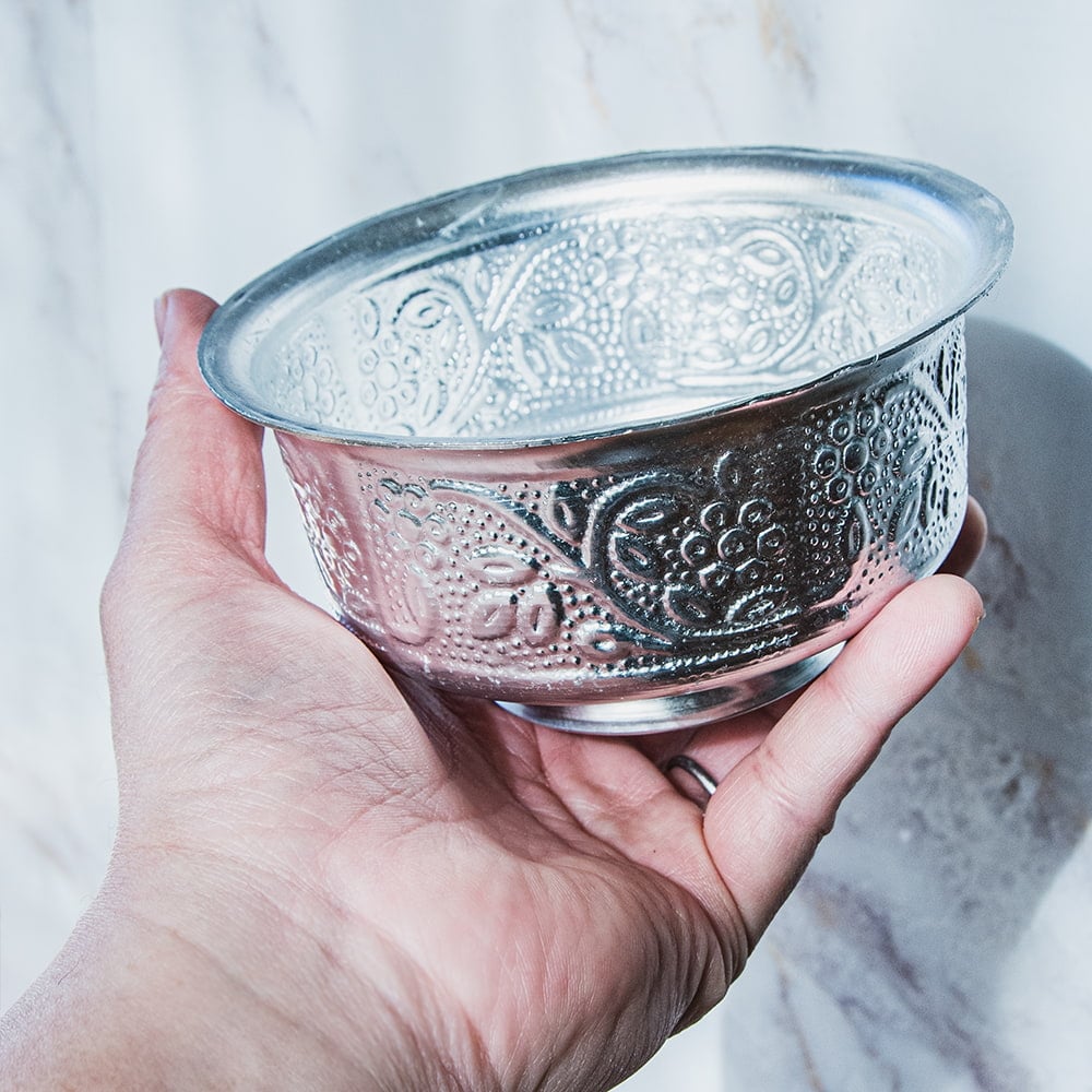 【6個セット】インド伝統唐草エンボスの脚付きアルミボウル 水盆 直径13cm