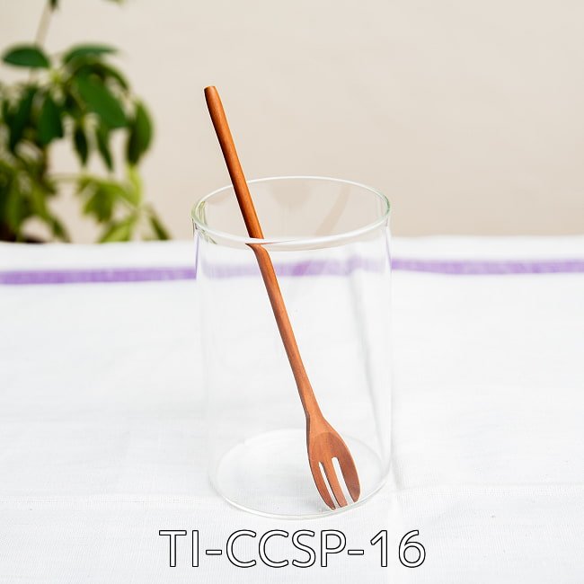 具材がすくいやすい!天然木のミニ先割れスプーン(TI-CCSP-16)の写真です