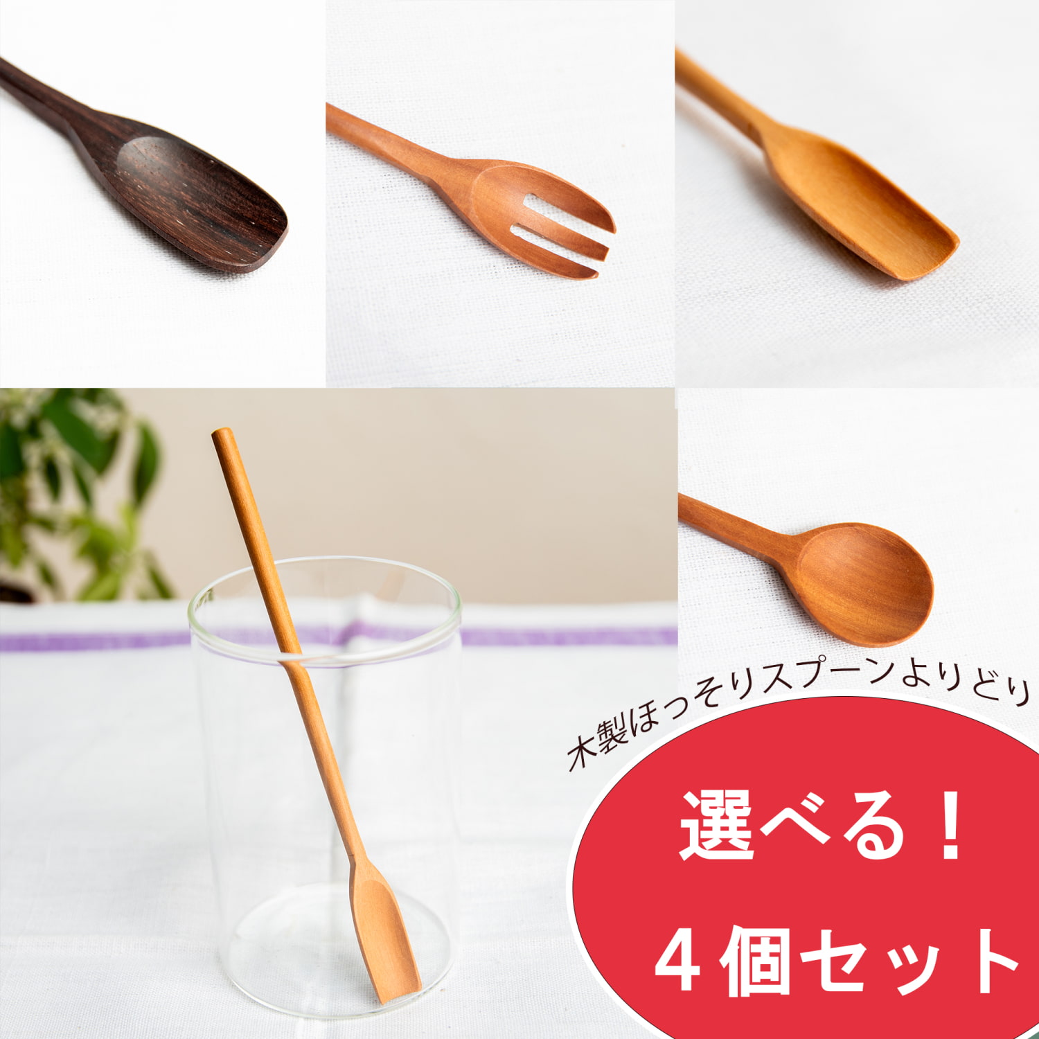 【自由に選べる4個セット】バリ島の天然木スプーン 各種よりどりセットの類似商品