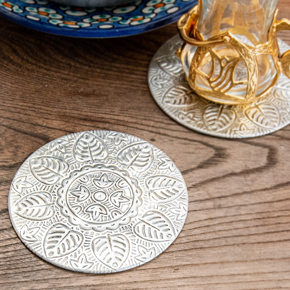 【4個セット】ムスリム職人の手仕事が息づく アルミコースター シンメトリーフラワー 通販店