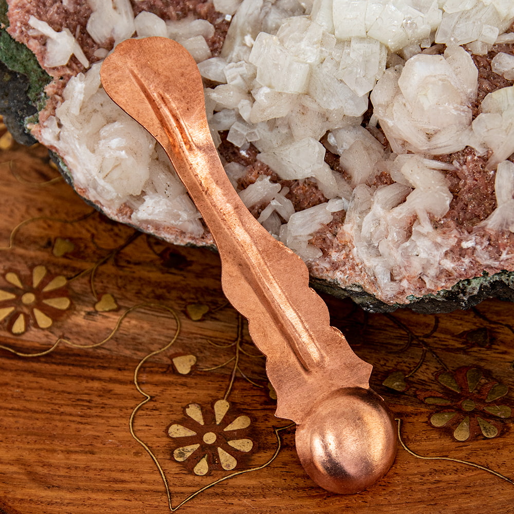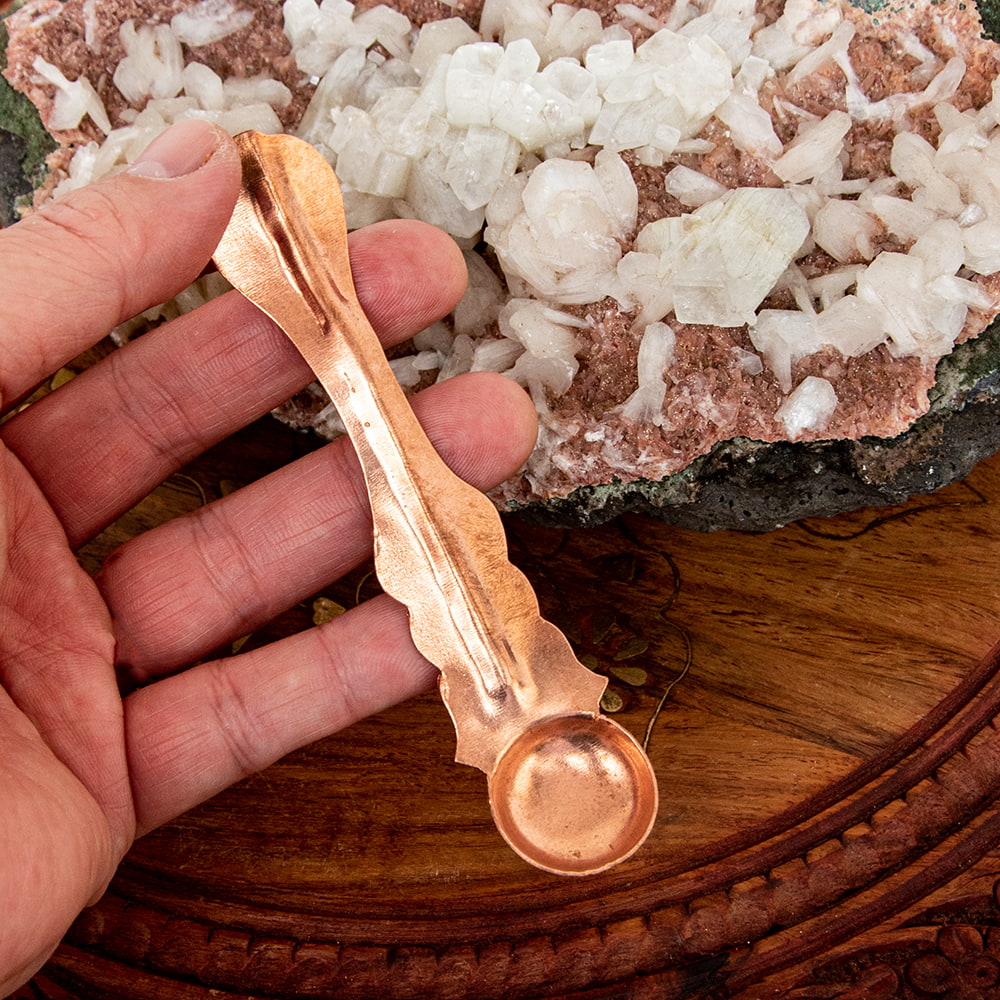 インドで礼拝用に使用されている銅製のスプーンです。銅はヒンドゥー教では聖なる金属として考えられ、寺院や祭壇などで使用されます。■銅製です