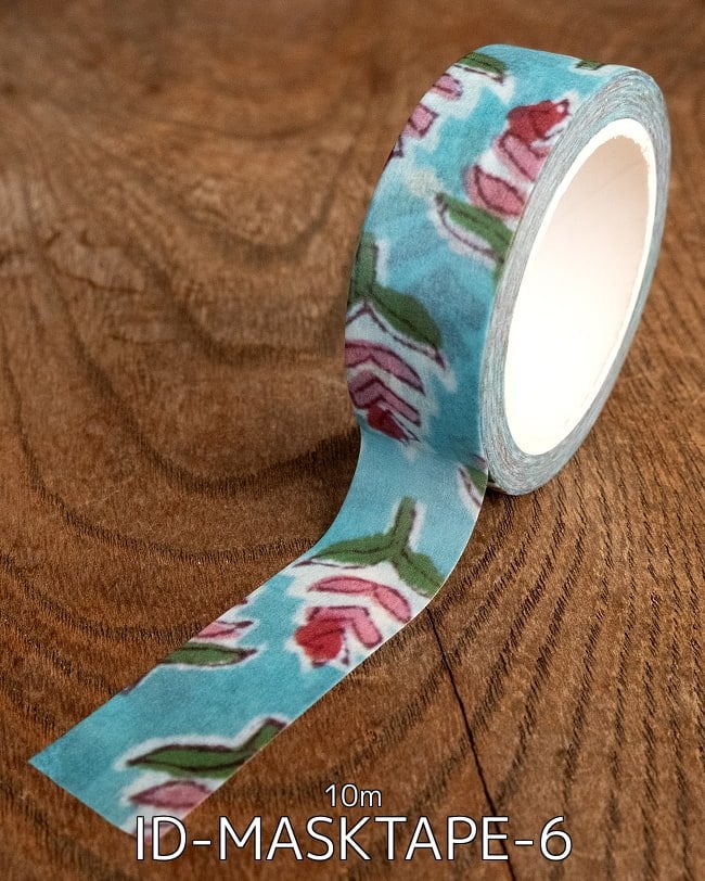 水色・ピンク花柄-ティラキタオリジナル マスキングテープ 15mm x 10m(ID-MASKTAPE-6)の写真です