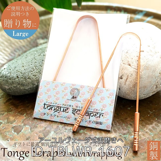【贈り物にも 個包装対応】 舌の掃除機 タン スクレーパー 本場インドの銅製 ラージタイプ アーユルヴェーダ式舌磨きへ(ID-TBLWR-1607)の写真です
