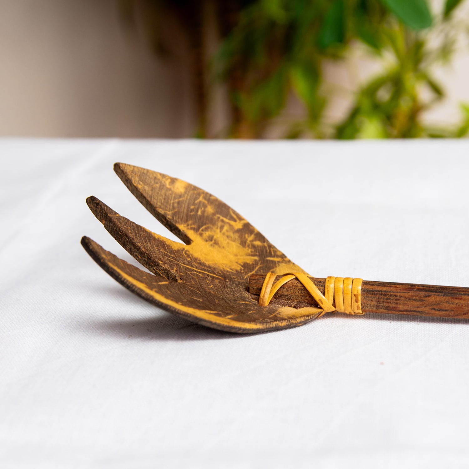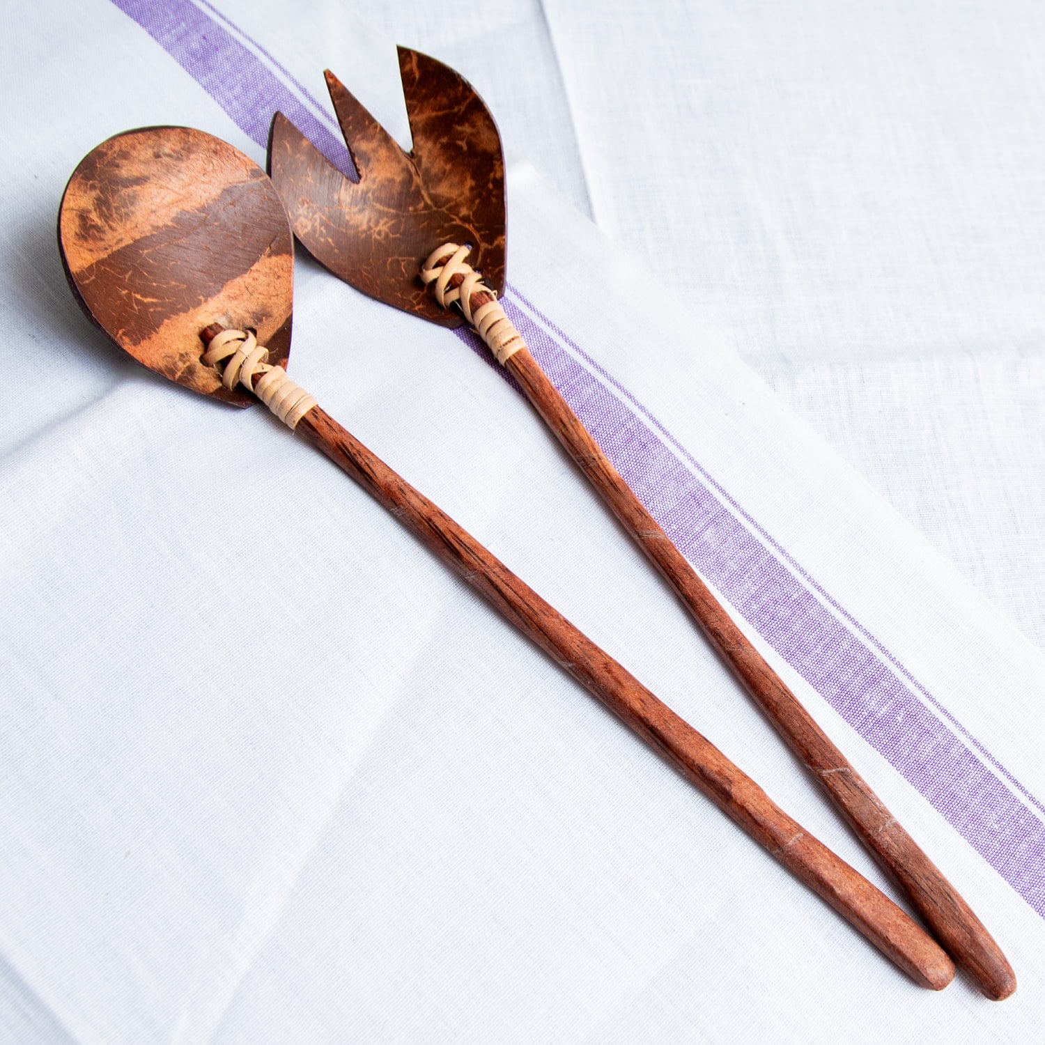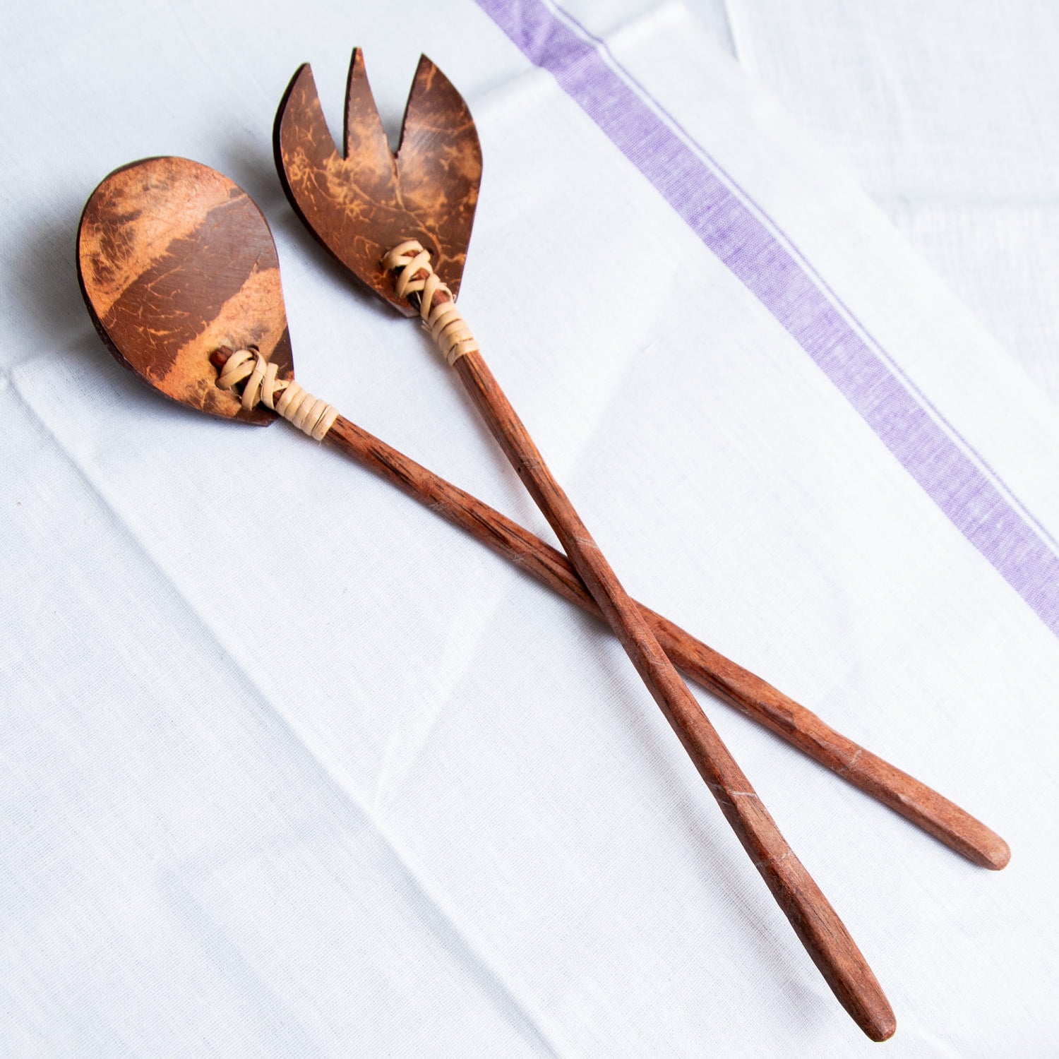 サラダの取り分けにも便利!ココナッツのスプーン・フォークセット サラダサーバー x 6個