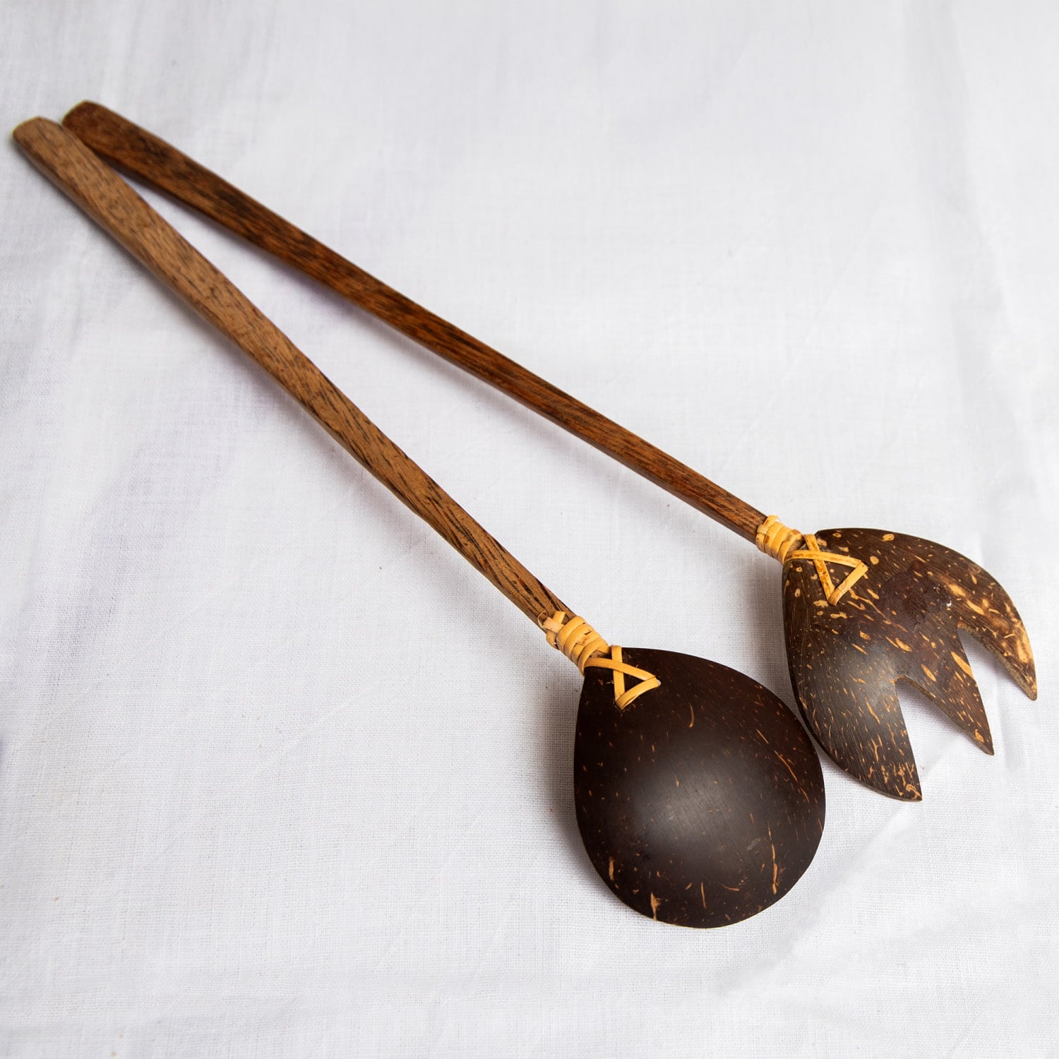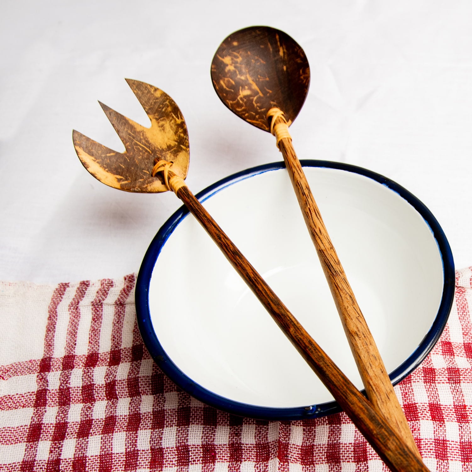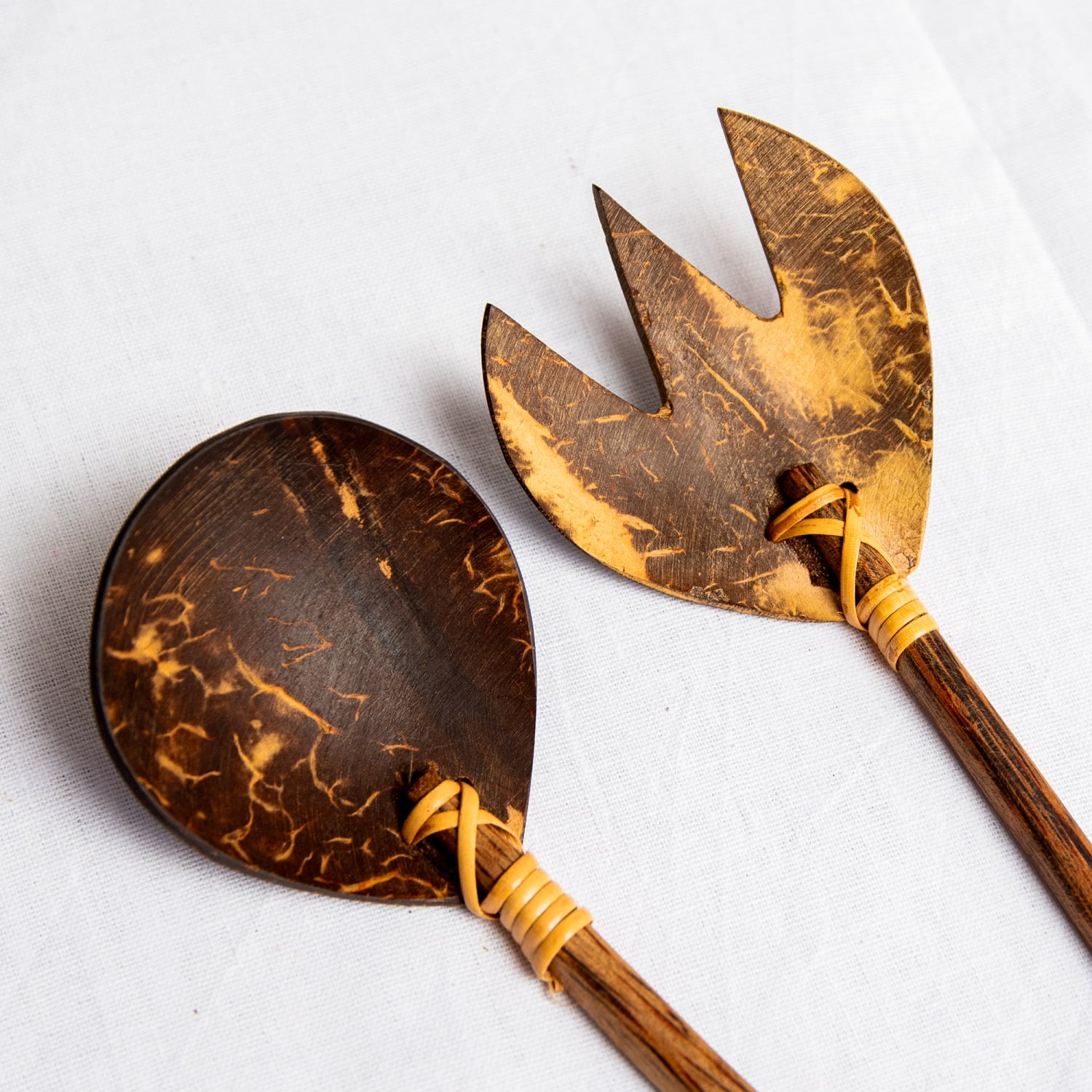サラダの取り分けにも便利!ココナッツのスプーン・フォークセット サラダサーバー x 6個
