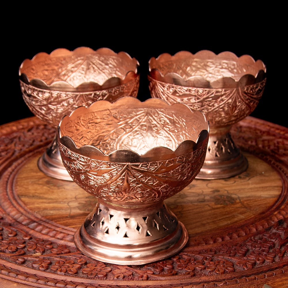 【6個セット】カシミールの重厚な精細彫金 脚付カトリ 高さ:9cm程度の類似商品